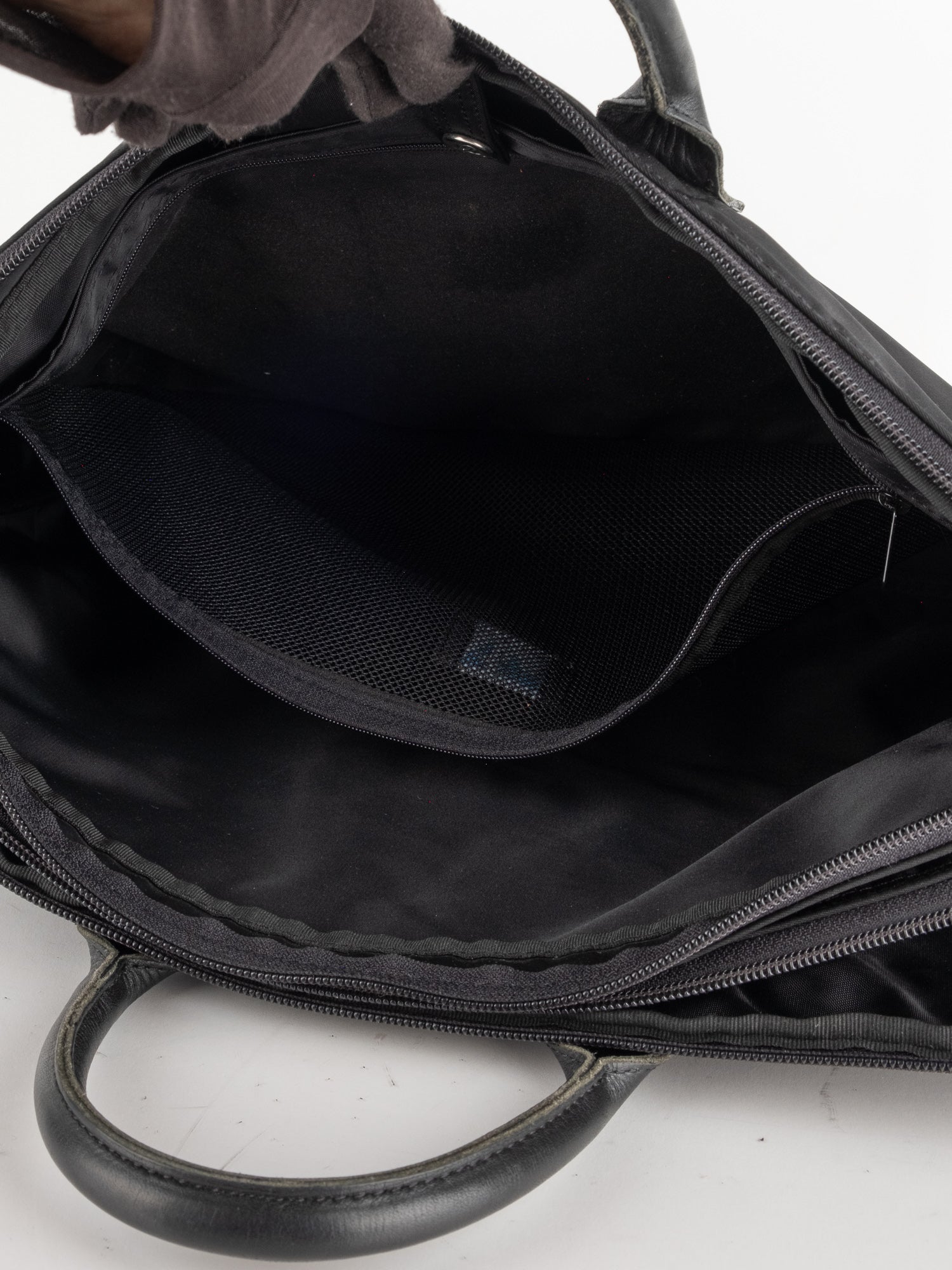 View Similar Productsוינטג׳ יד שנייה. תיק מסמכים גדול ושימושי עשוי נאיילון שחור עם ידיות נשיאה חזקות, עיצוב נקי ומינימליסטי, ופתרונות אחסון נוחים ליום-יום. מתאים לעבודה, ללימודים ולנשיאת מחשב ומסמכים, עם מראה קלאסי שמתאים לכל לוק.
