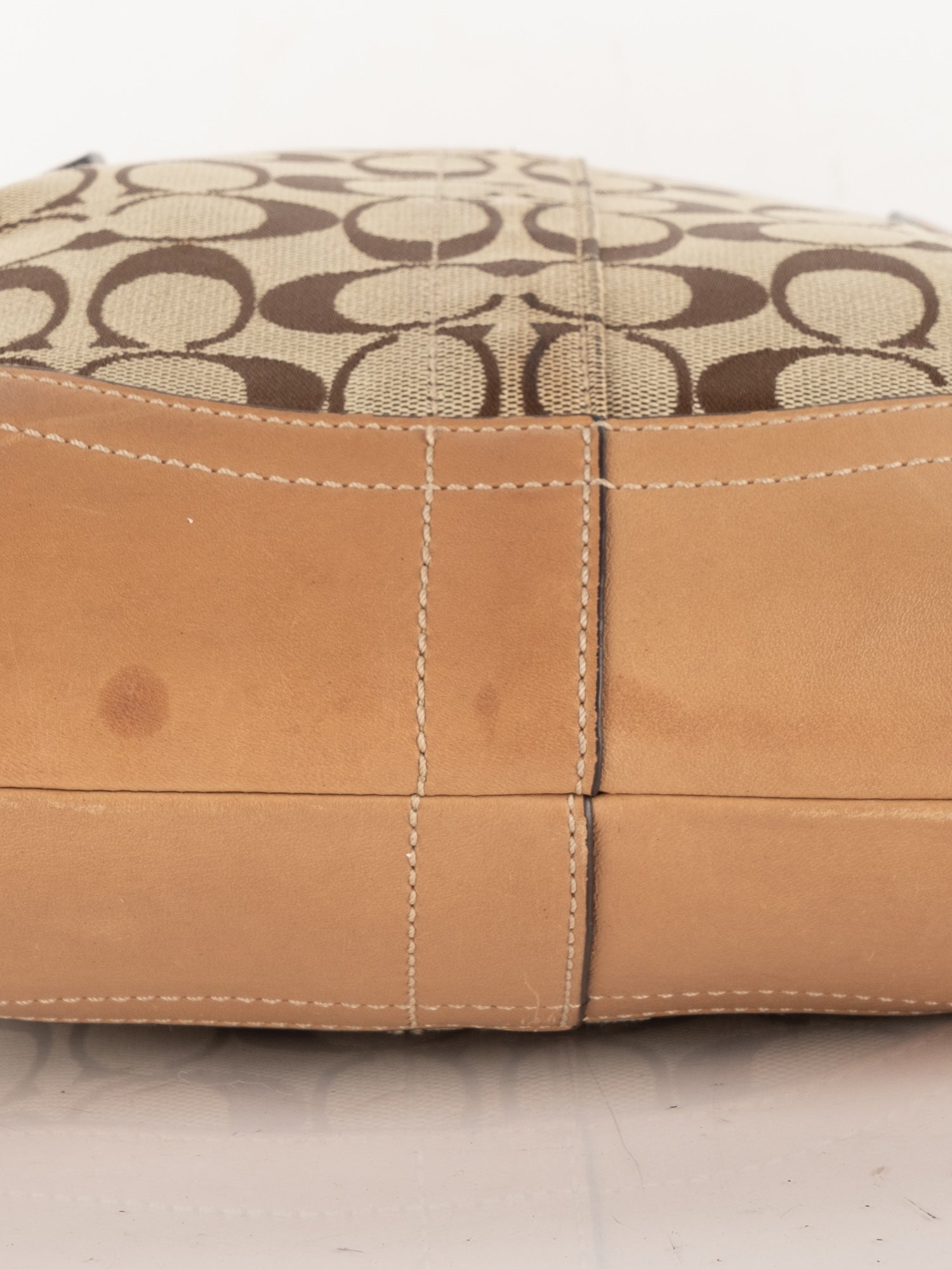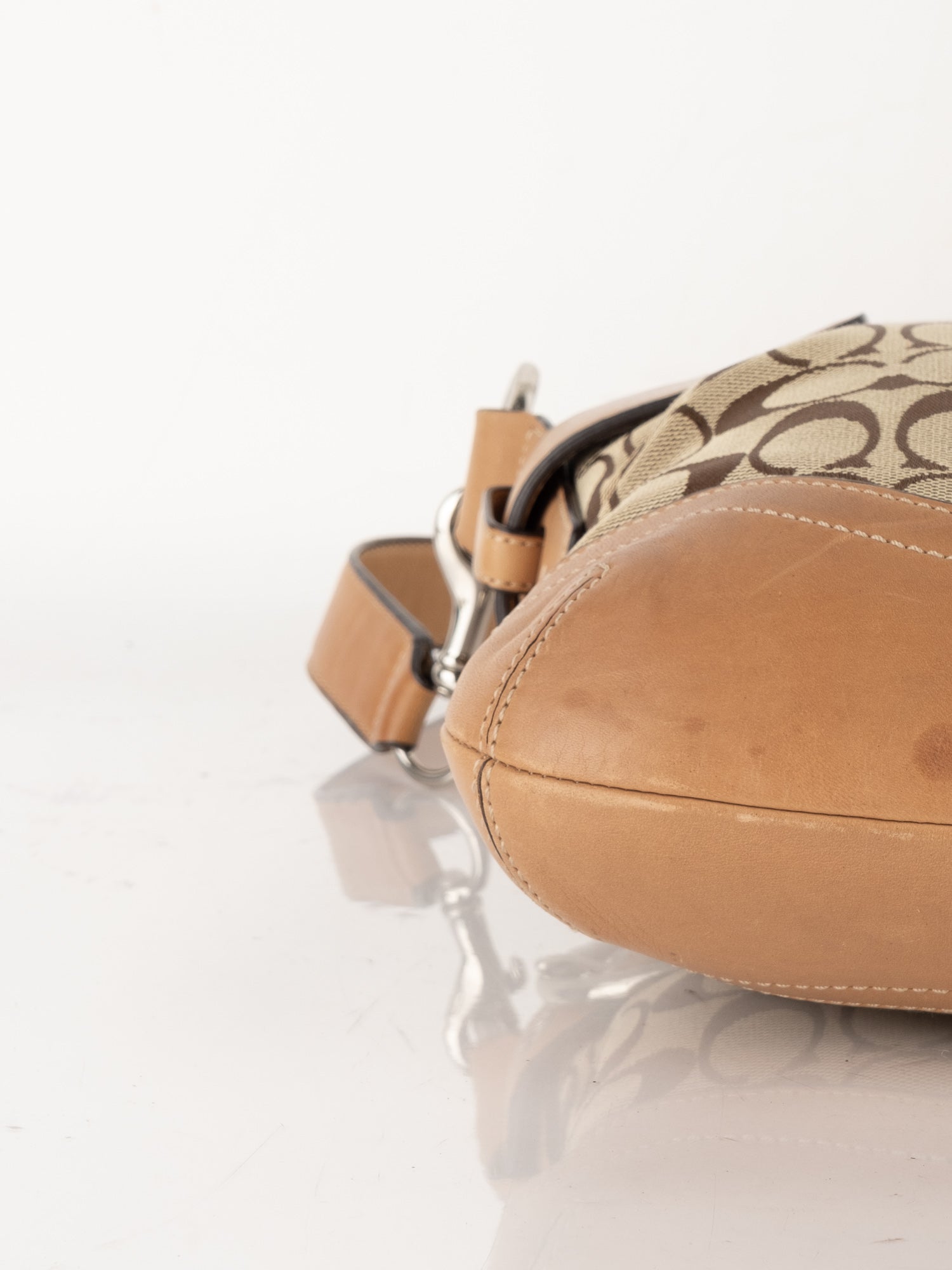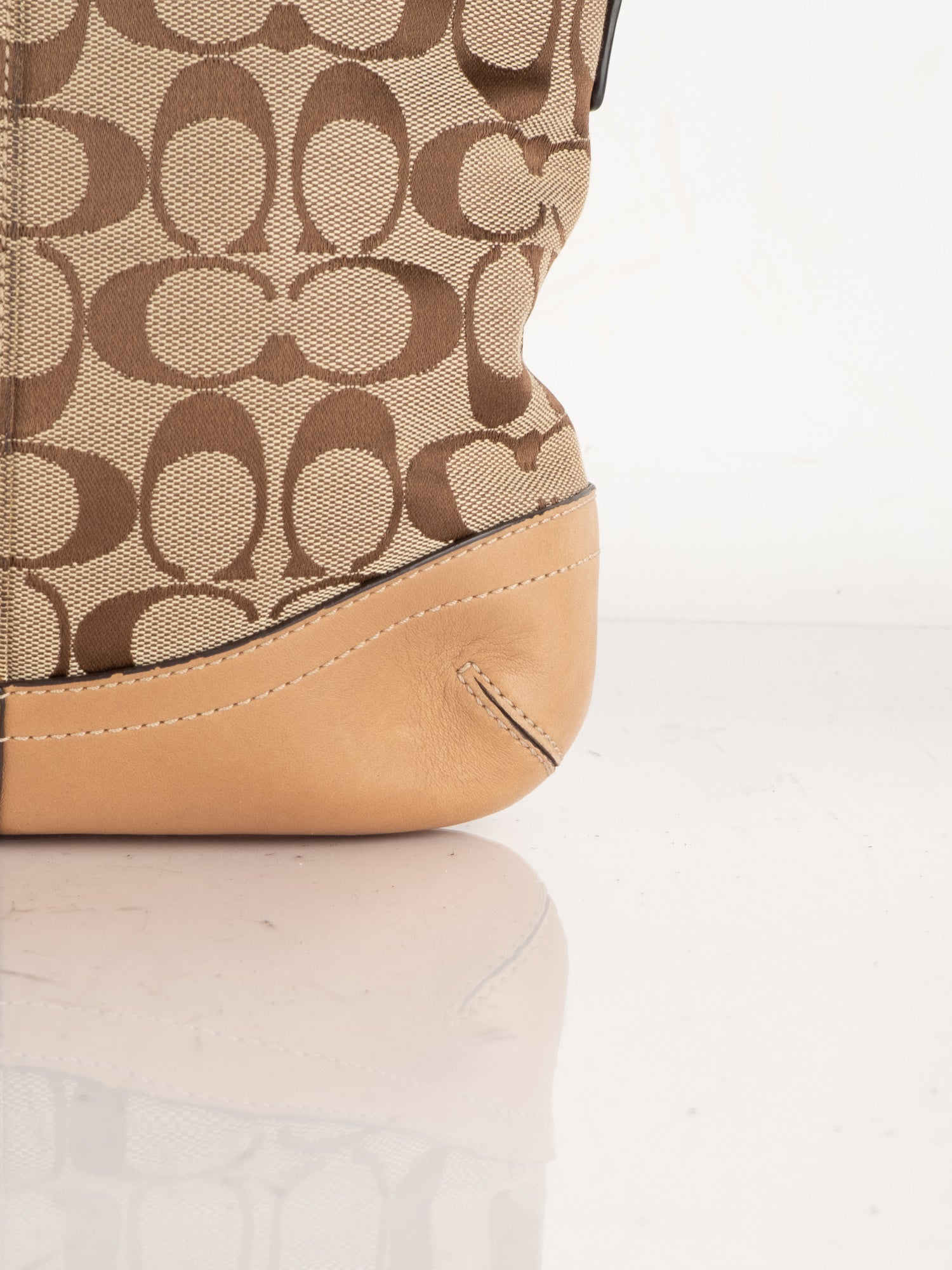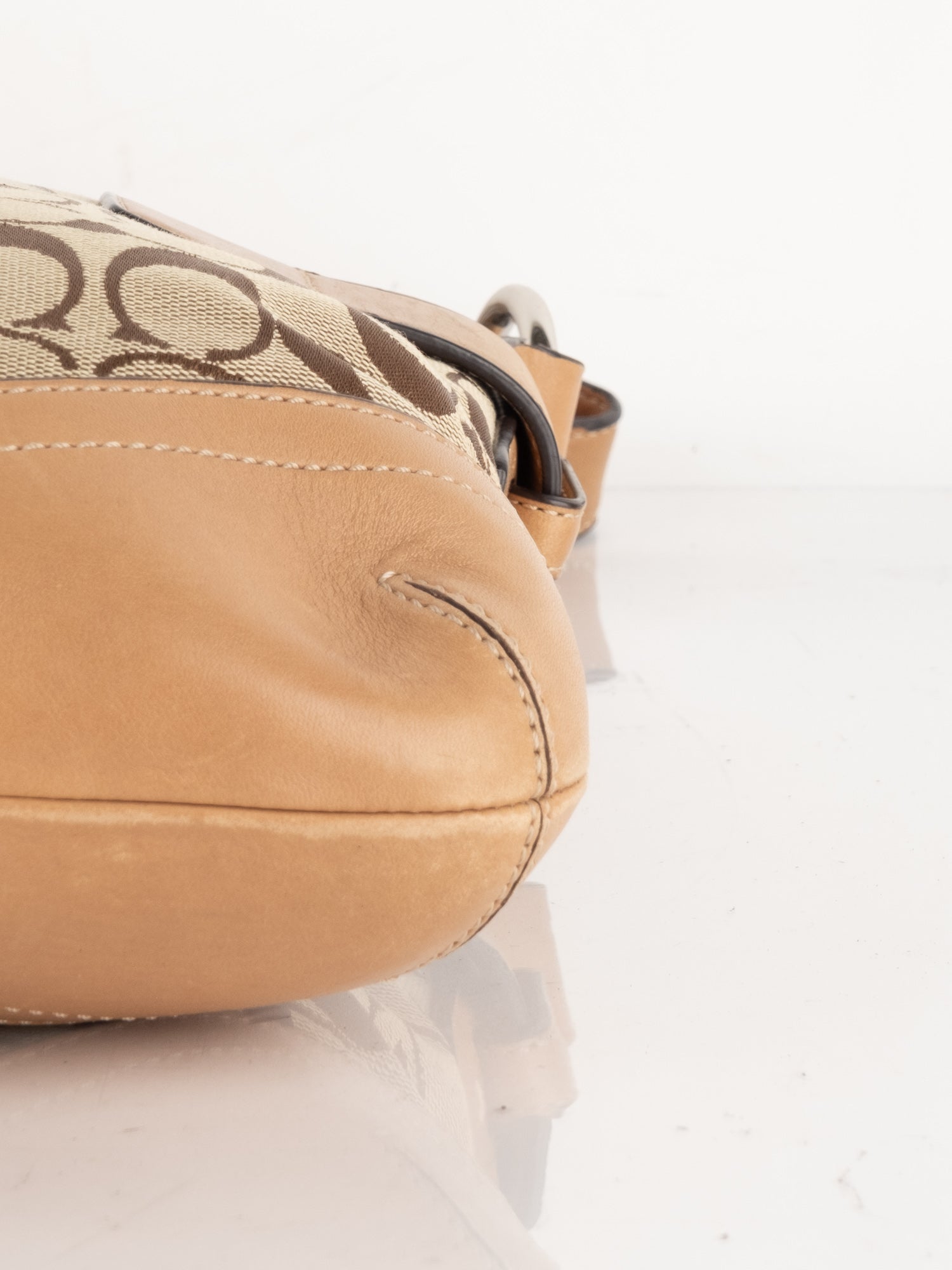 התיק עשוי Signature Canvas בגווני בז׳ וחום.
