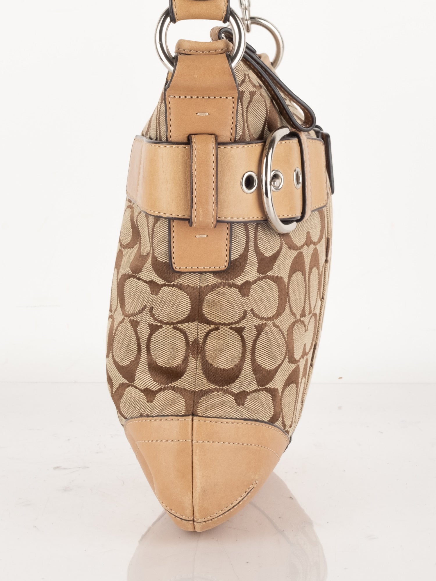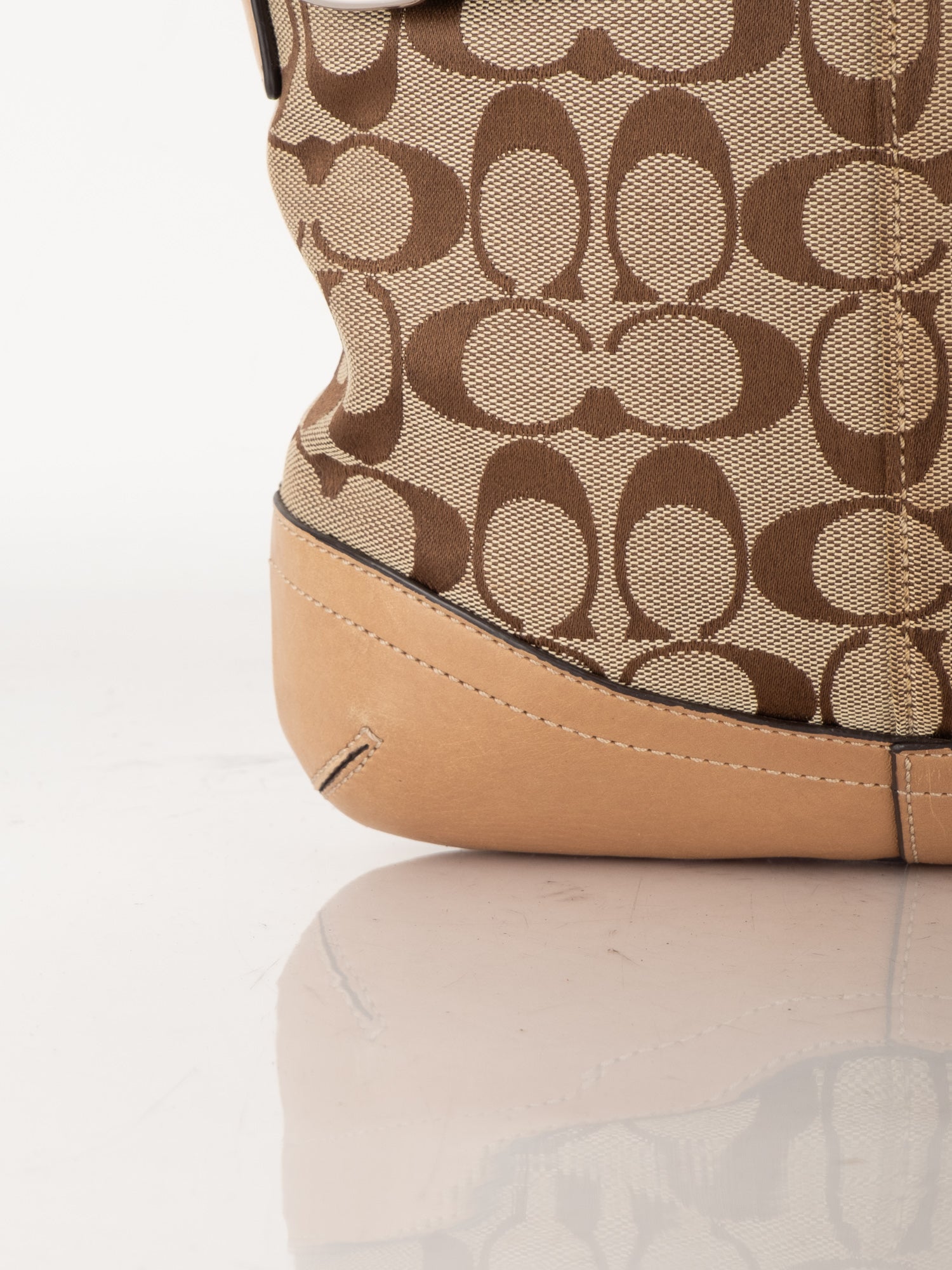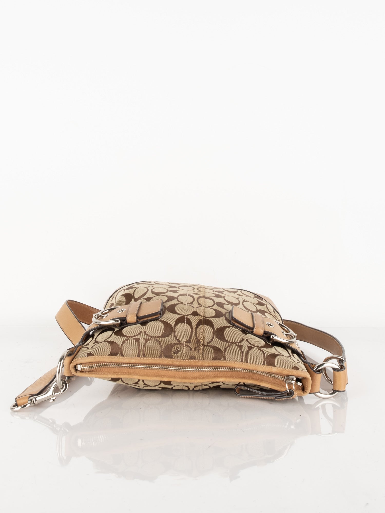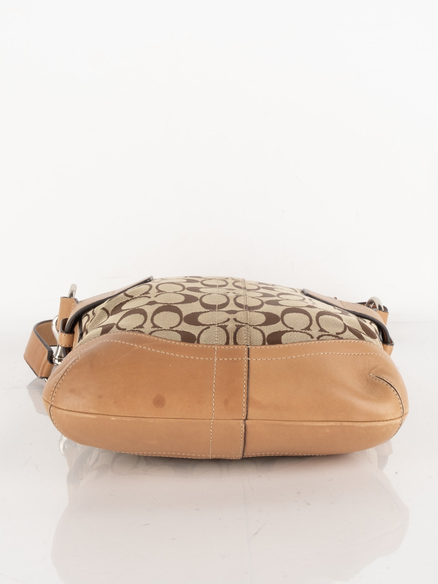 התיק עשוי Signature Canvas בגווני בז׳ וחום.