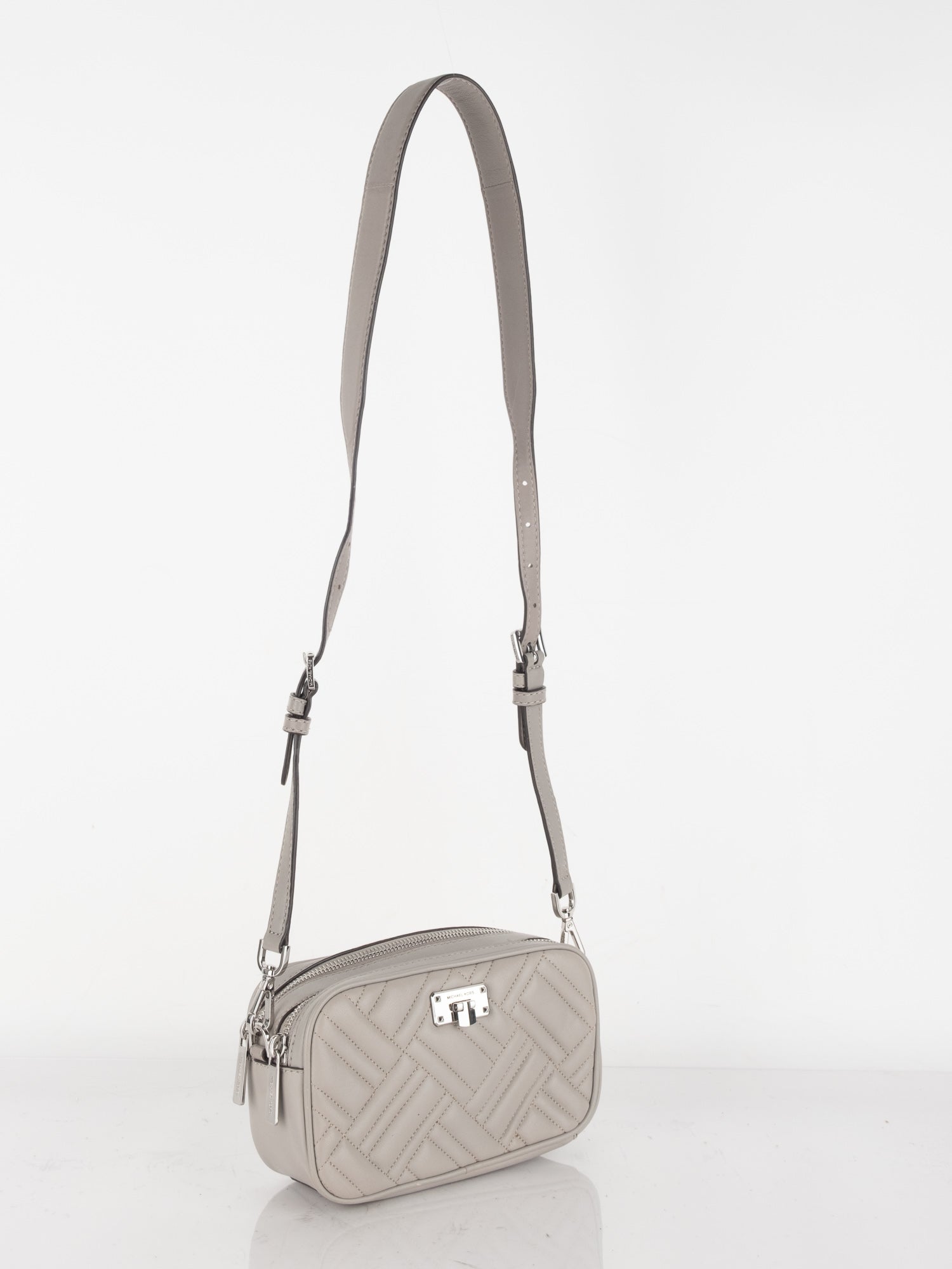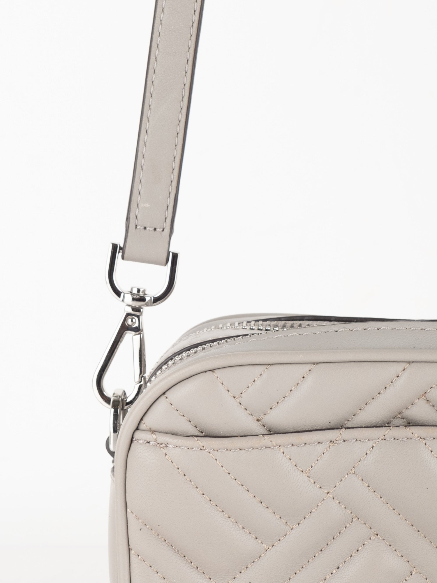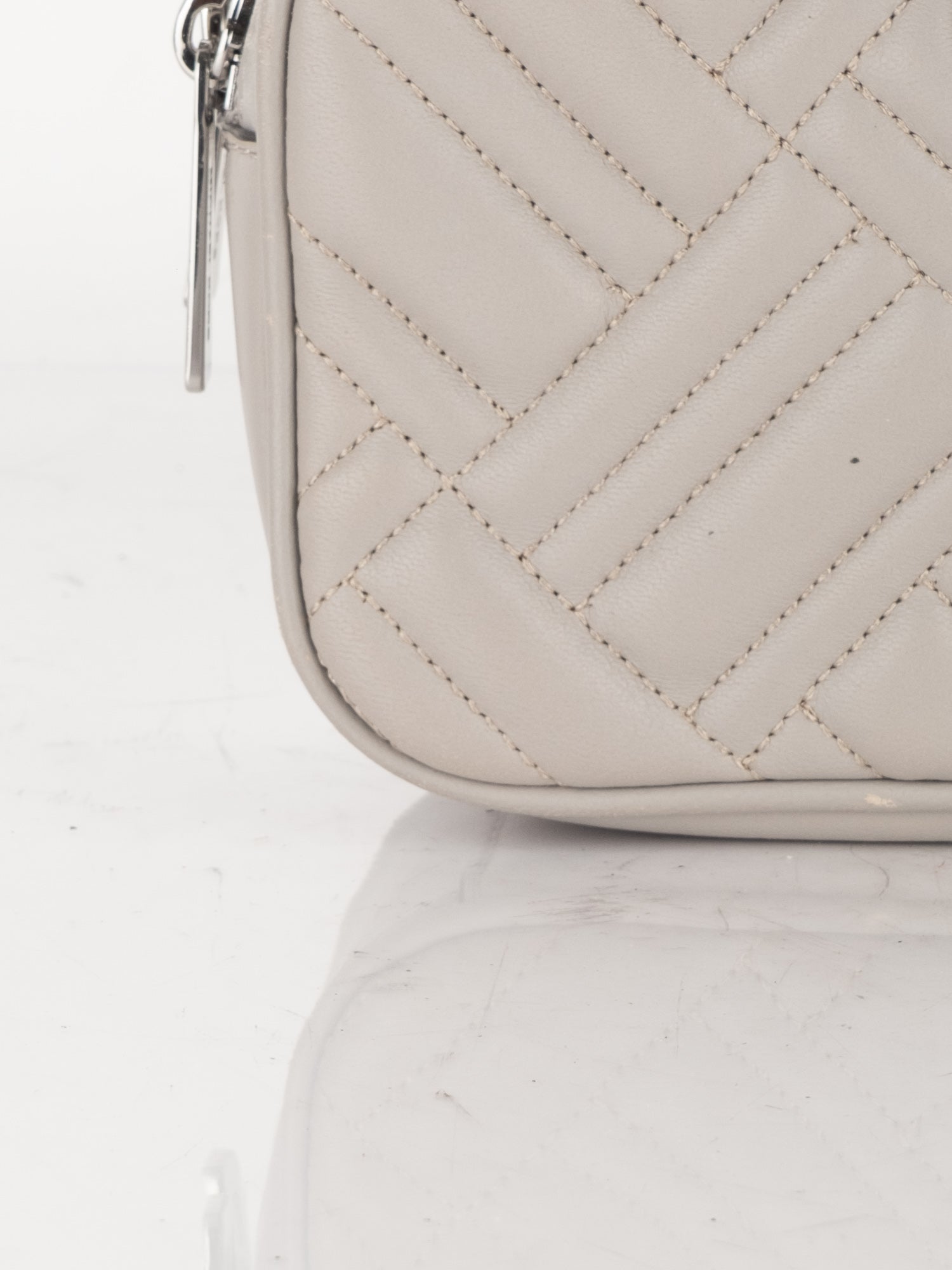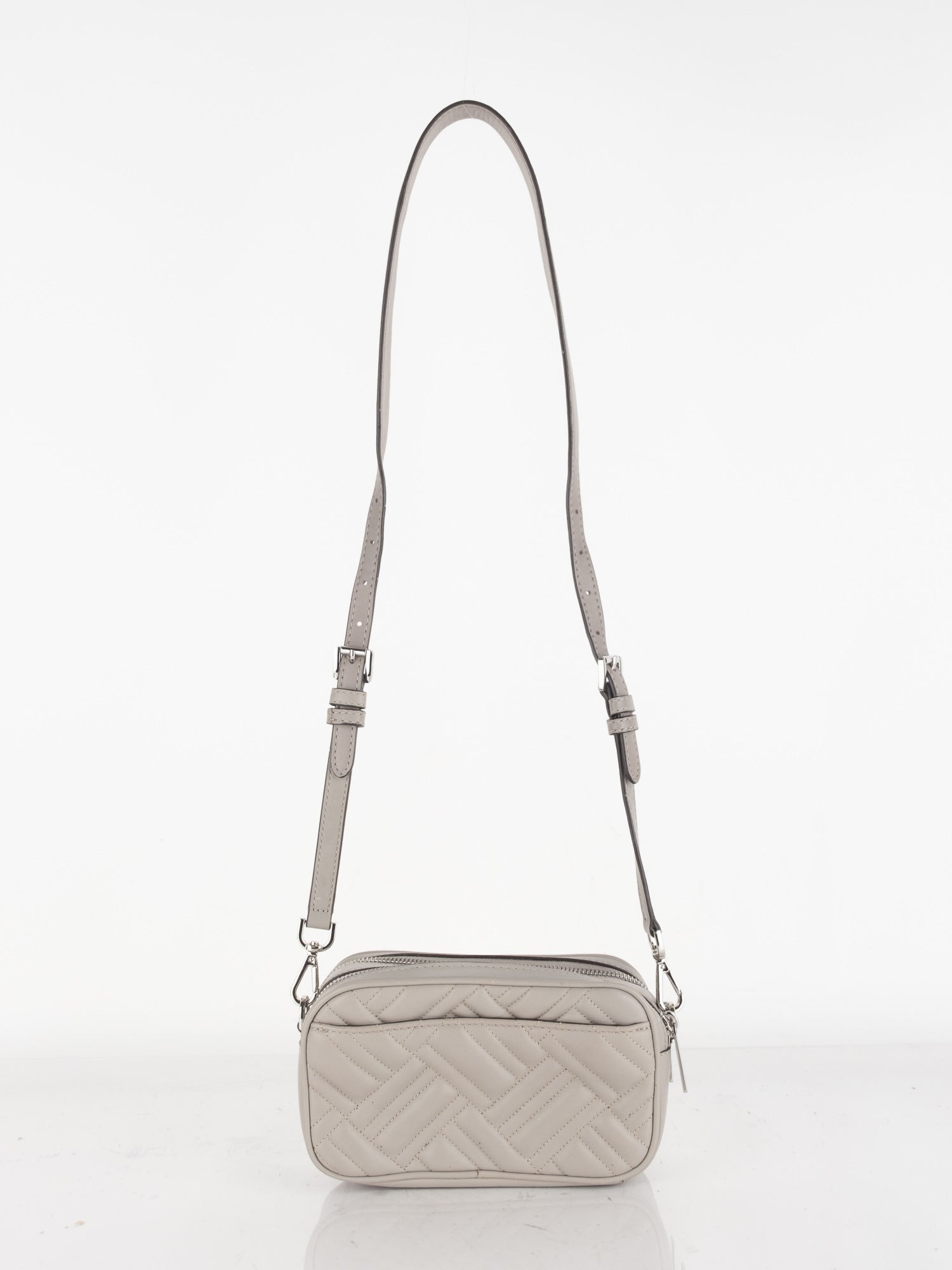 התיק עשוי דמוי־עור איכותי בגימור קווילט, עם רצועת כתף ארוכה ומתכווננת, תא מרכזי עם רוכסן וטאץ׳ מתכתי בגוון כסף בחזית. קל משקל, נוח, ומתאים לנשיאה יומיומית.