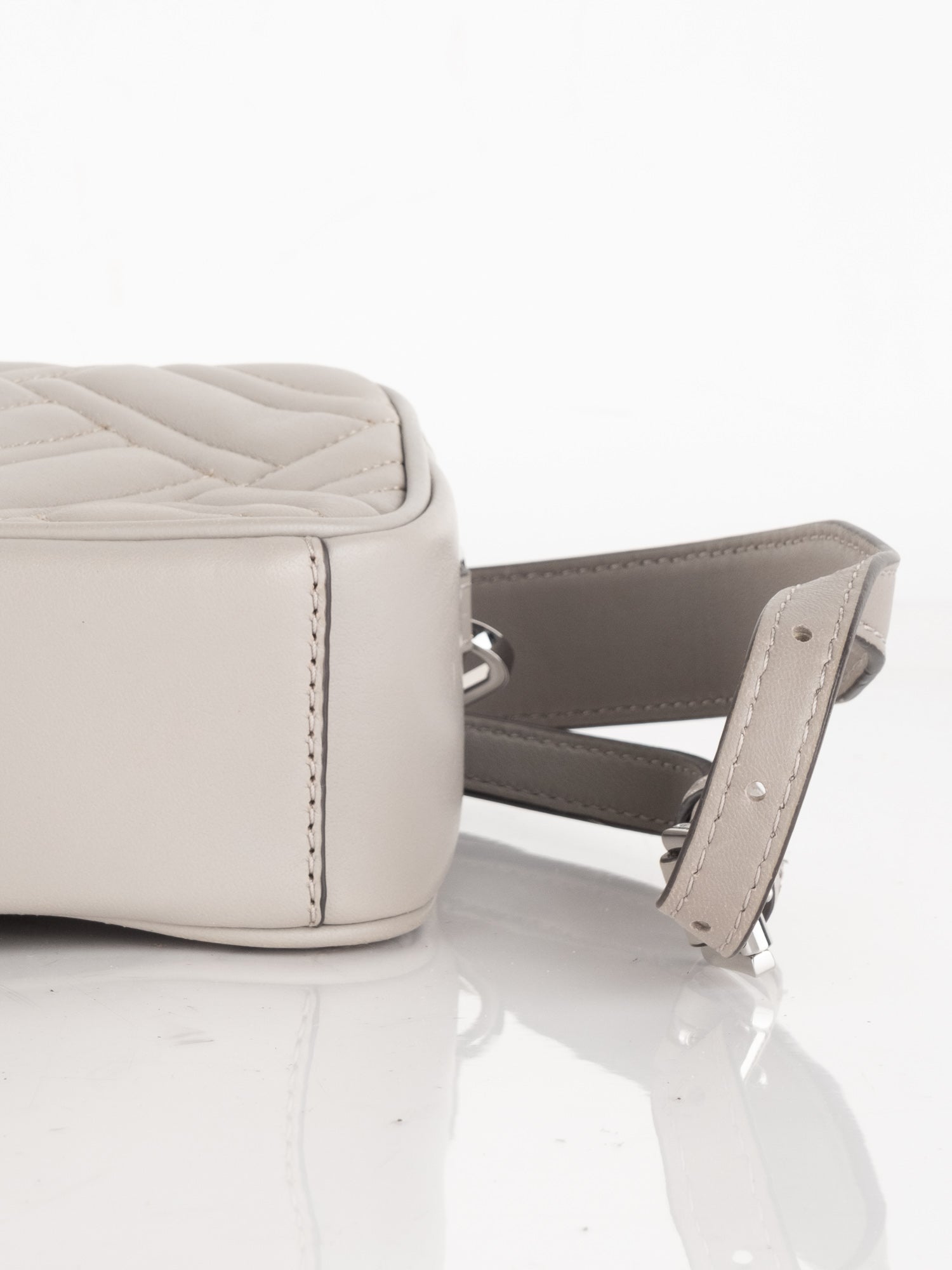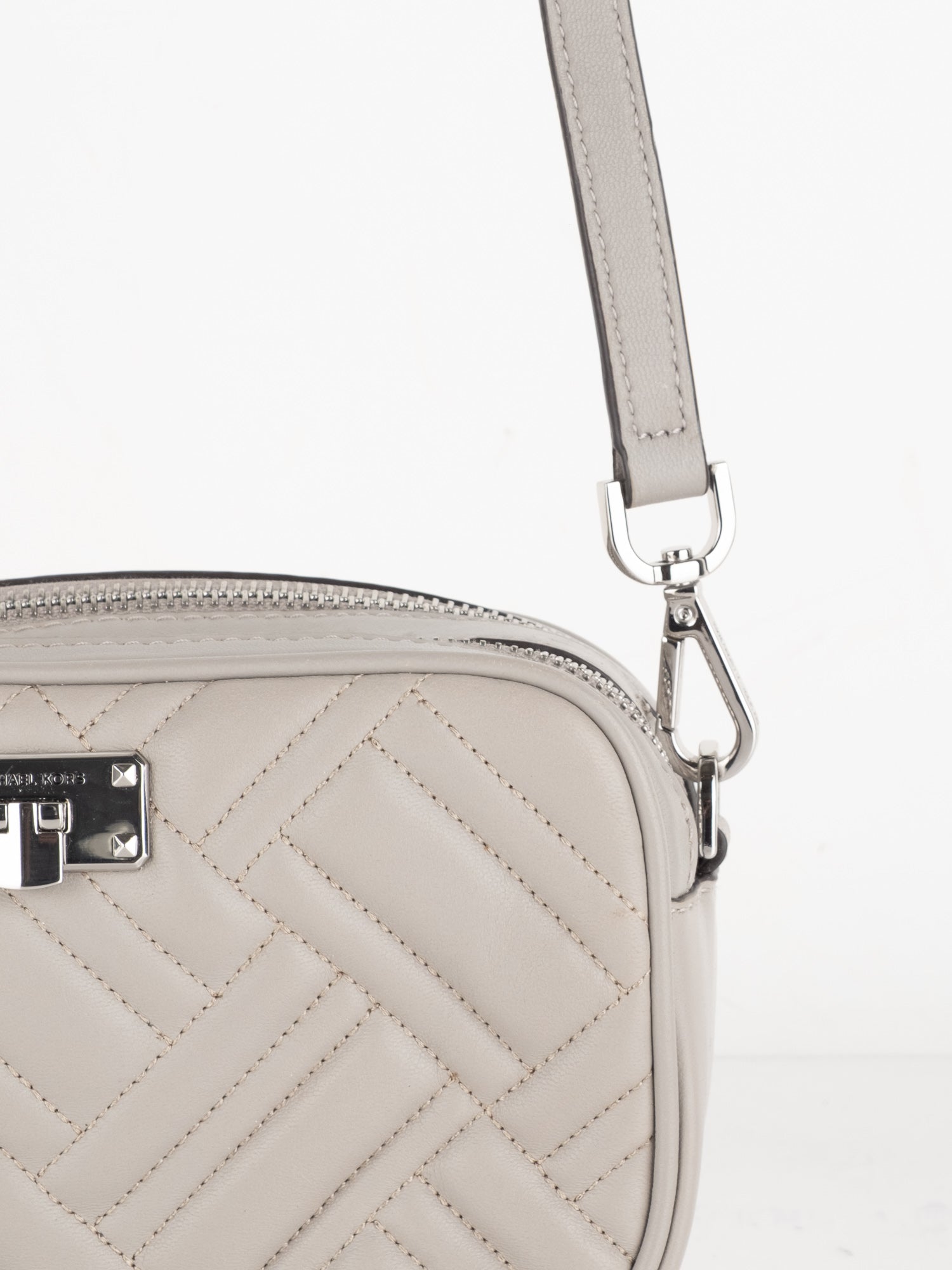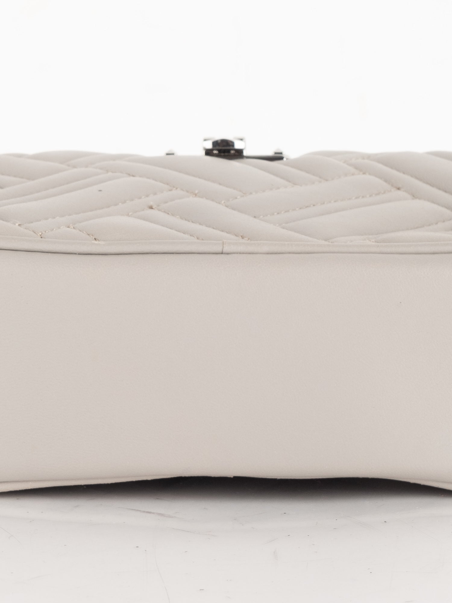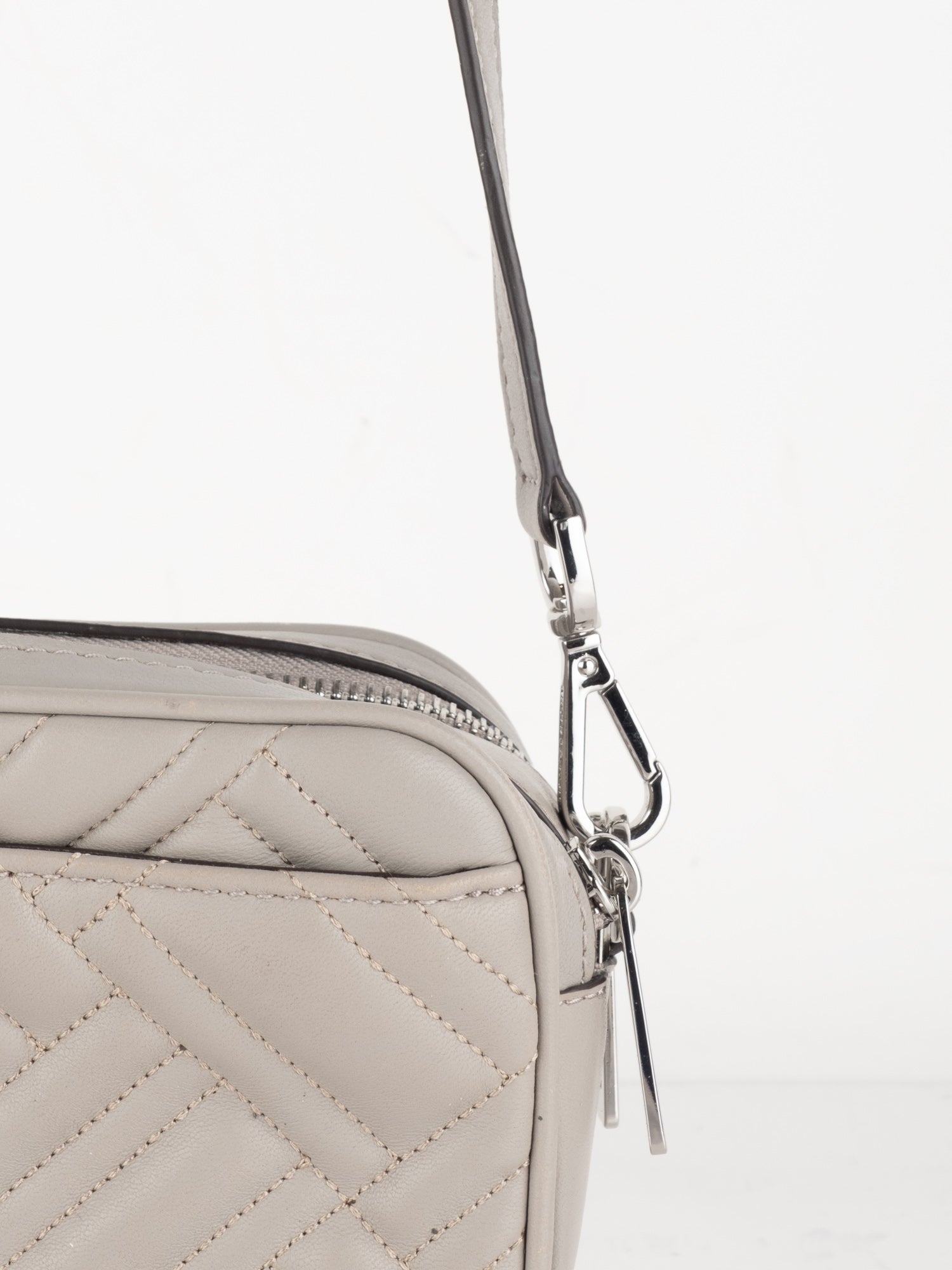 התיק עשוי דמוי־עור איכותי בגימור קווילט, עם רצועת כתף ארוכה ומתכווננת, תא מרכזי עם רוכסן וטאץ׳ מתכתי בגוון כסף בחזית. קל משקל, נוח, ומתאים לנשיאה יומיומית.