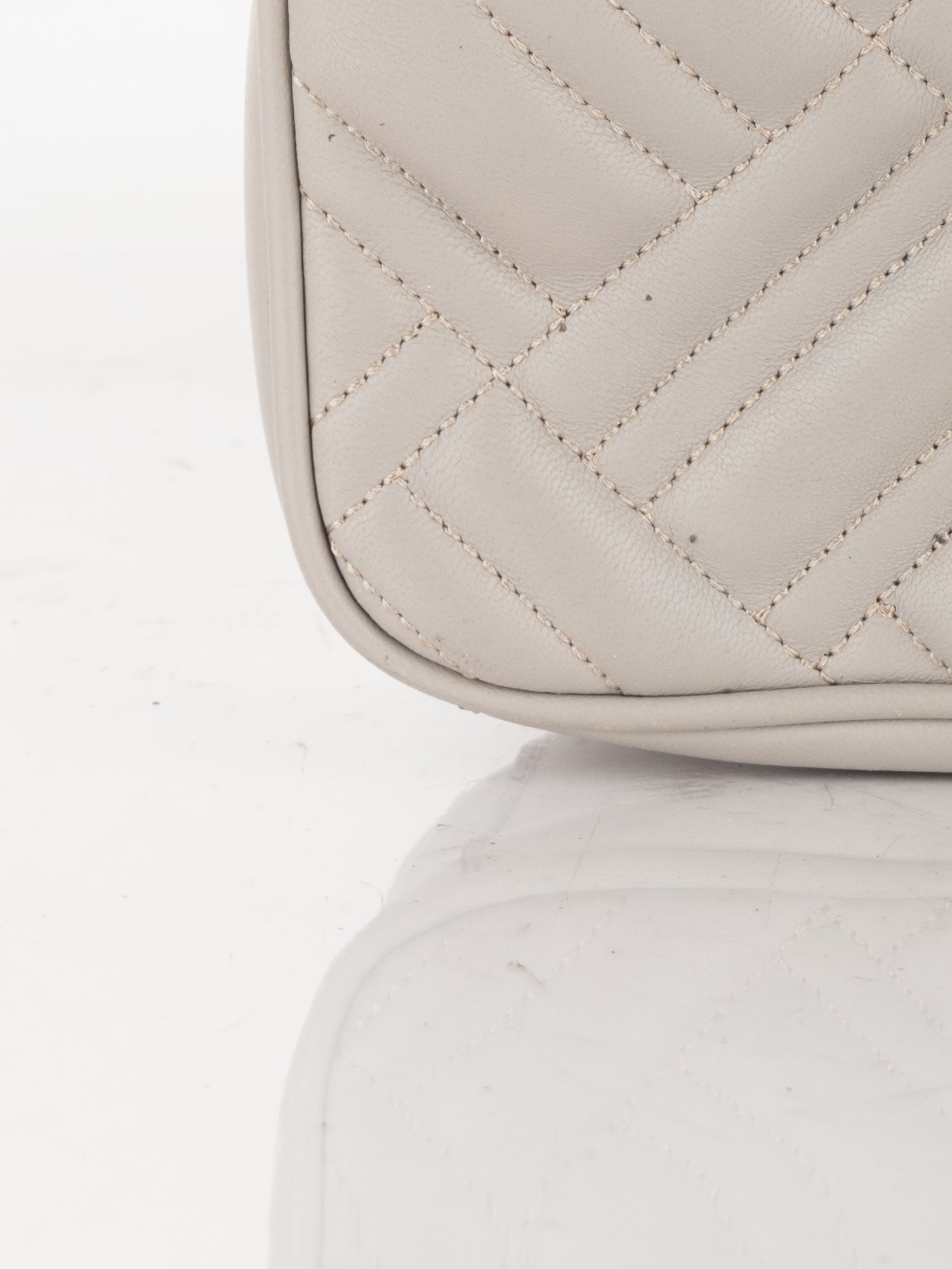 תיק Michael Kors וינטג׳ יד שנייה בגוון אבן רך, בעיצוב קלאסי ונקי עם תפירת קווילט אלכסונית שמעניקה עומק וטקסטורה יוקרתית. הצורה האליפטית הנעימה והפרופורציות הקומפקטיות יוצרות מראה אלגנטי שמלווה אותך בכל שעה ביום, ומוסיף תחושת סטייל שקט אך מאוד מורגש. רצועת הכתף המתכווננת מאפשרת נשיאה מותאמת ונוחה, והתיק כולו מרגיש איכותי, עכשווי ונשי.