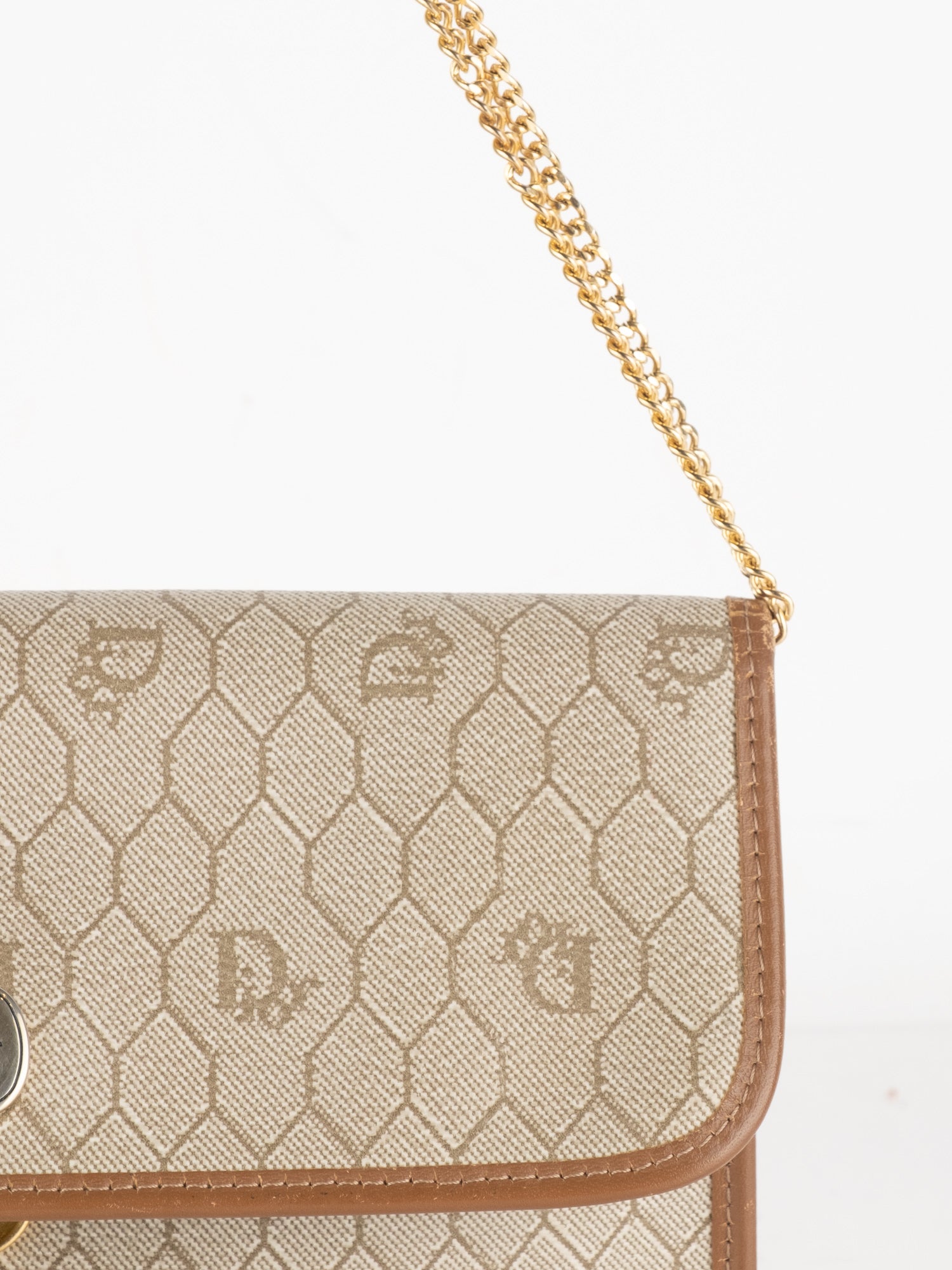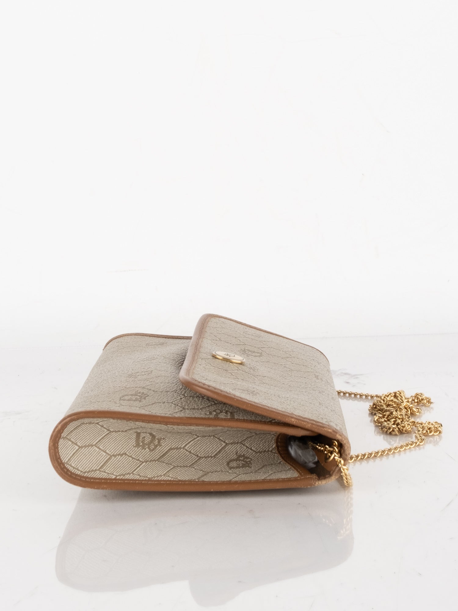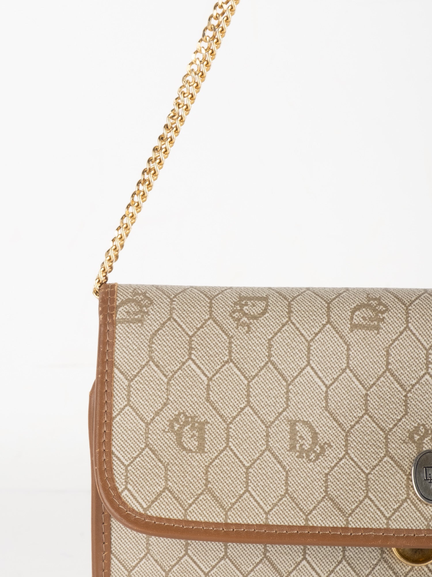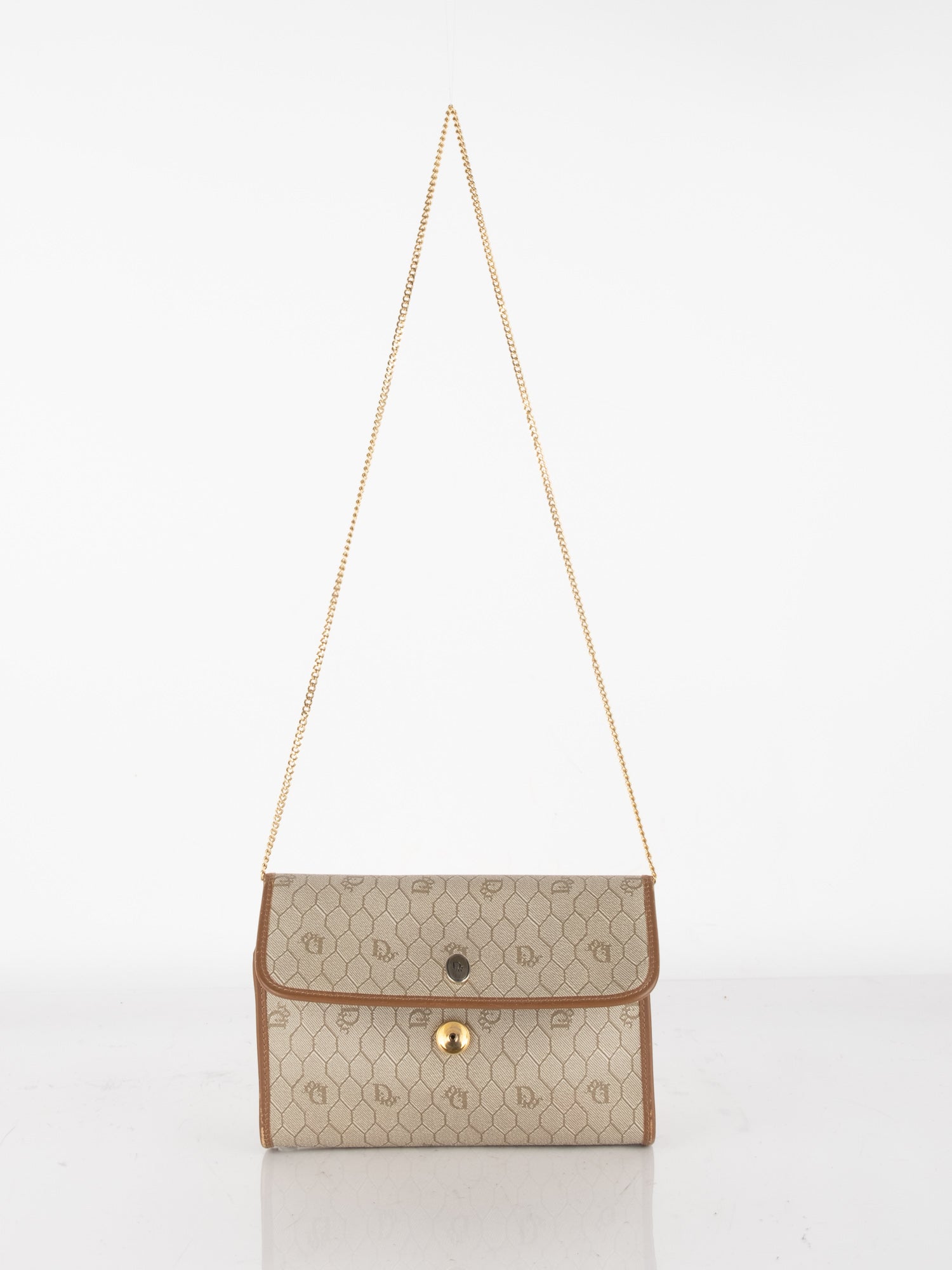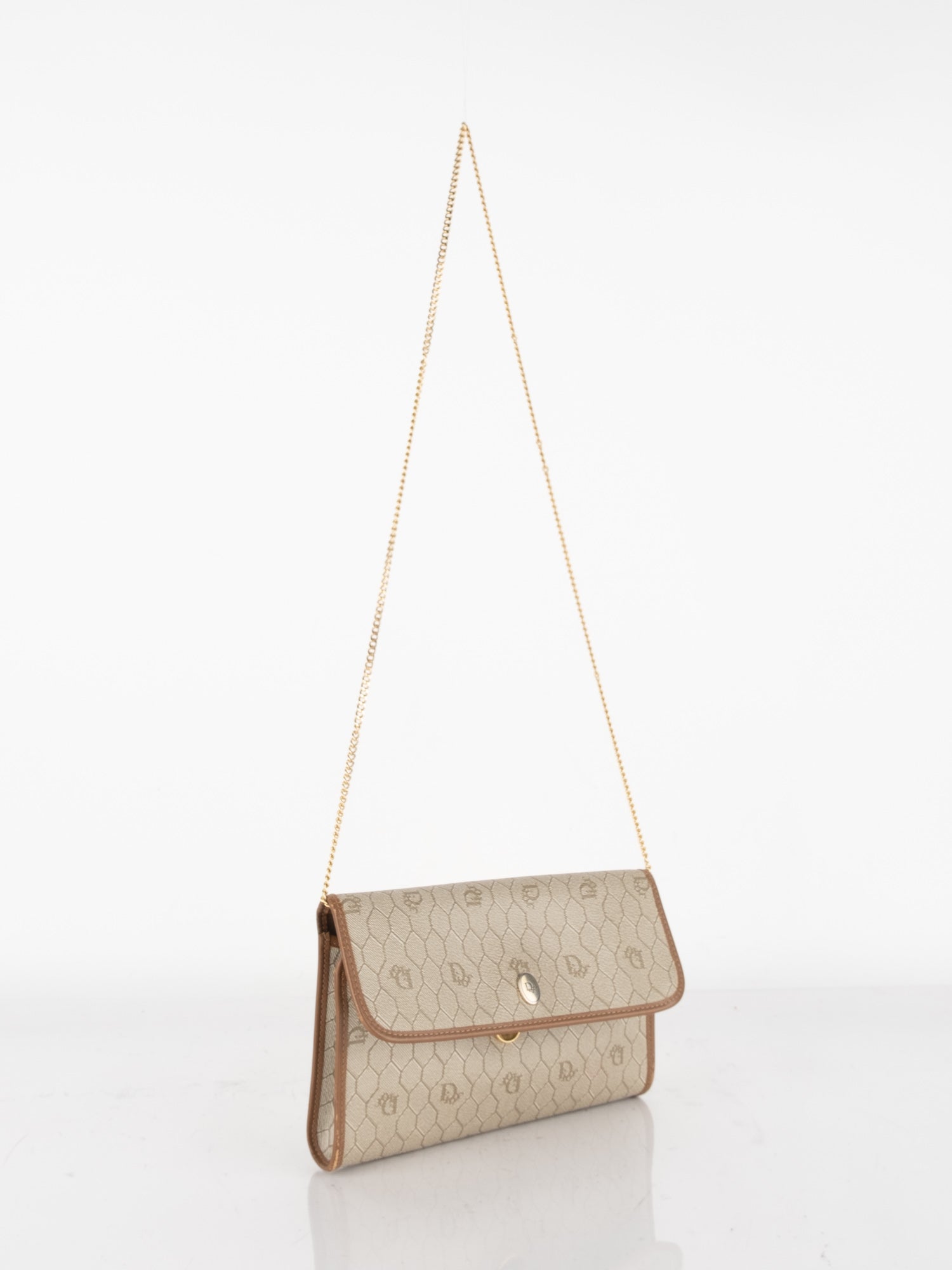 View Similar Productsתיק כתף אלגנטי של דיור (Dior), וינטג׳ יד שנייה, עשוי קנבס מונוגרם בגוון בז׳ בהיר בשילוב פרטי עור דקים בגוון חום טבעי. רצועת השרשרת המוזהבת מעניקה לתיק נגיעה יוקרתית ורכה, והגזרה הדקיקה והקלאסית יוצרת מראה נקי, נשי ומתוחכם. פריט מושלם לערב קליל, פגישה או ליום־יום אלגנטי עם טאץ' פריזאי מדויק.