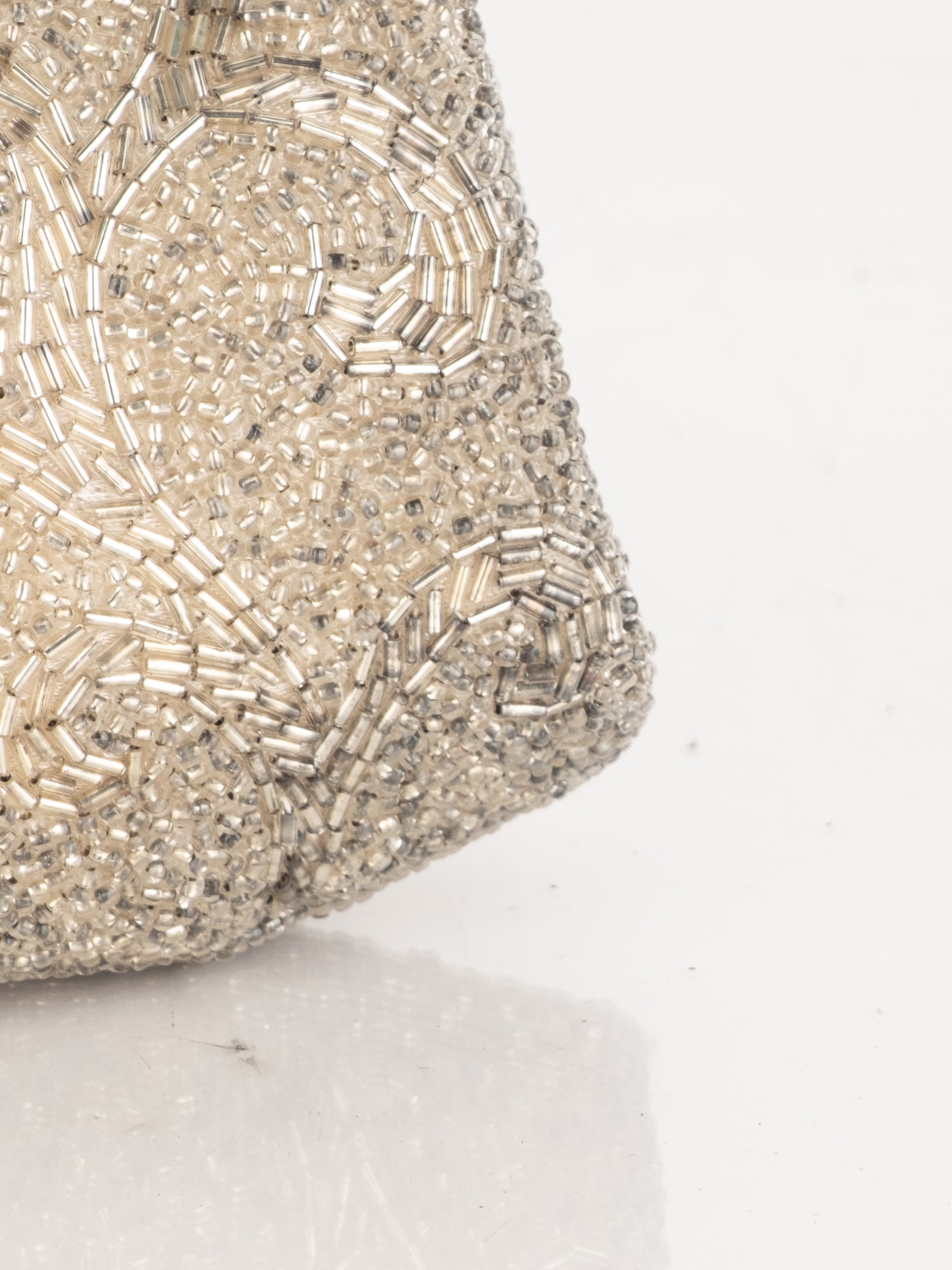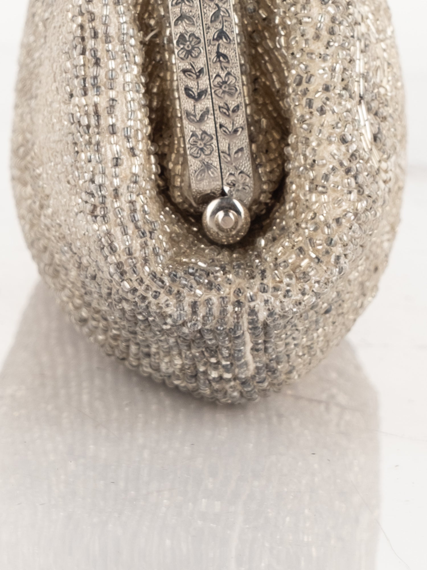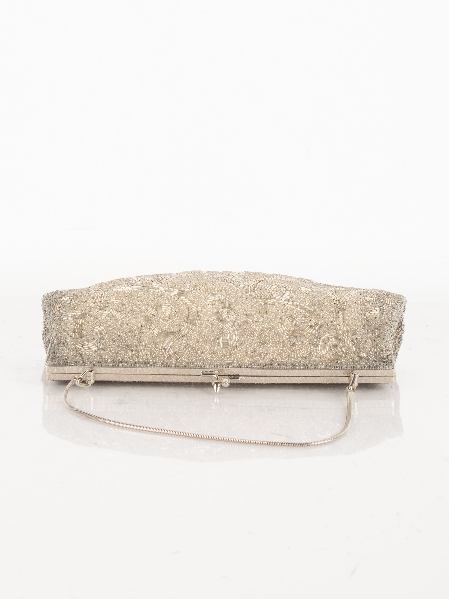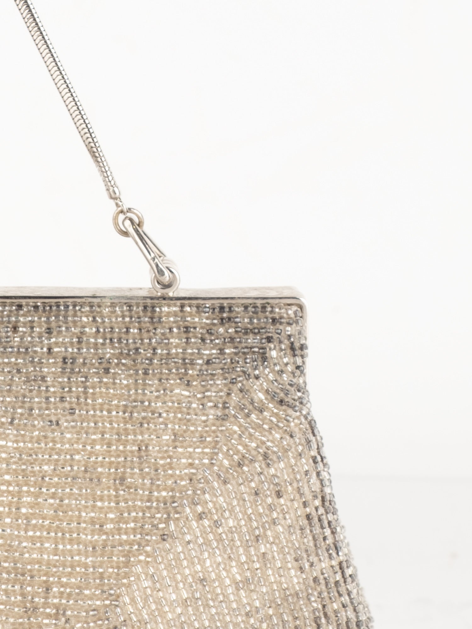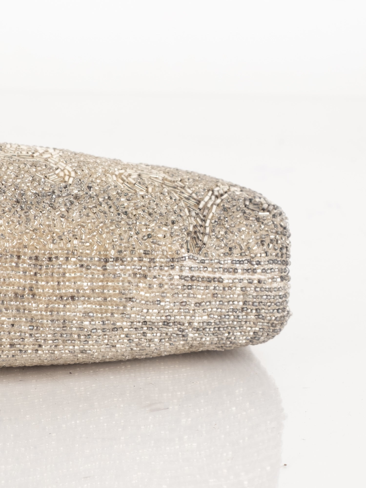 רשת כסף מבריקה, סגירת מתכת, ידית קצרה, תיק קטן תואם.