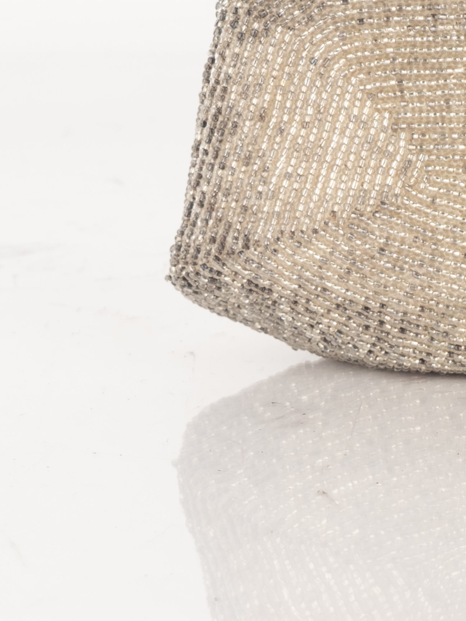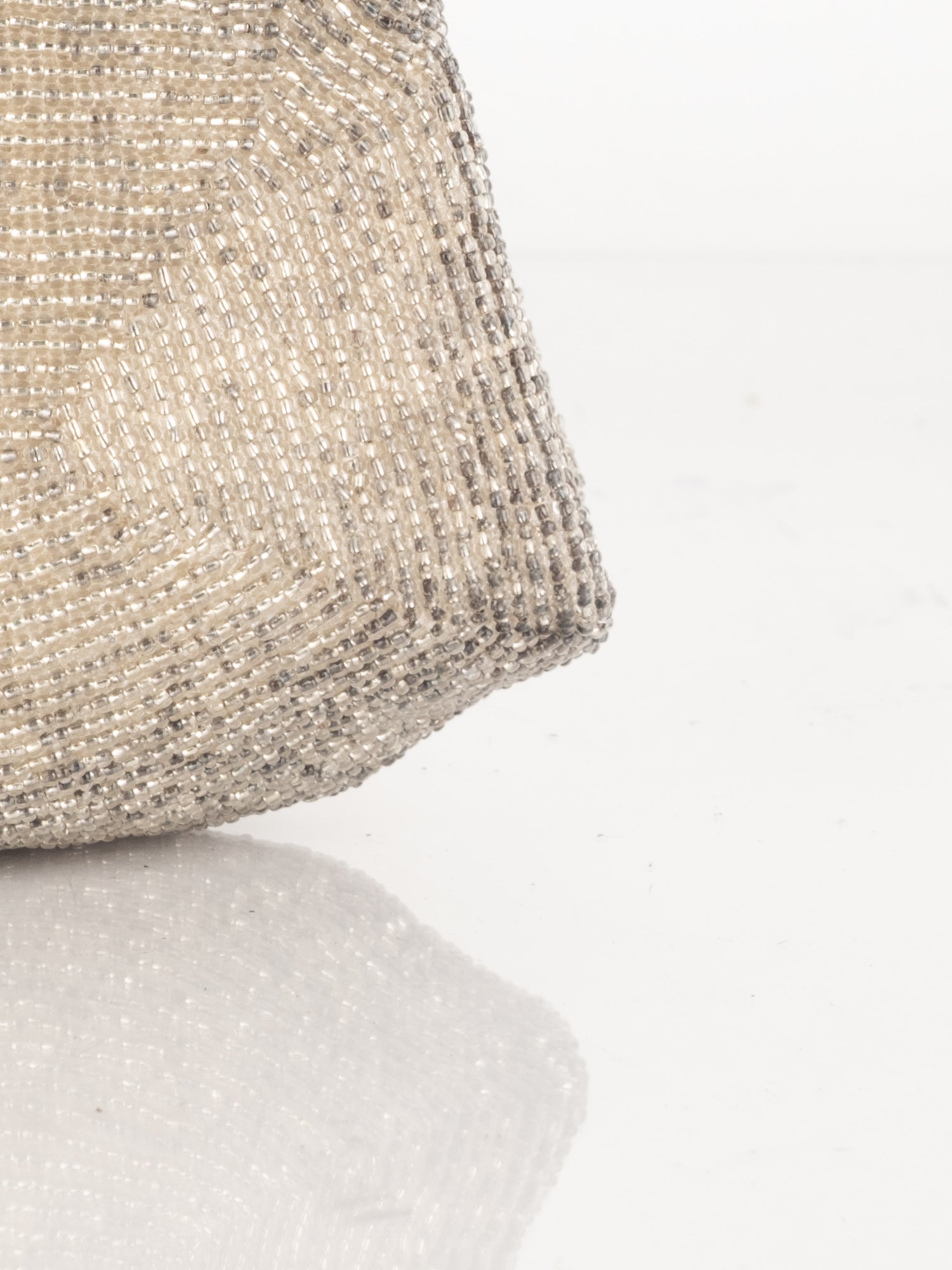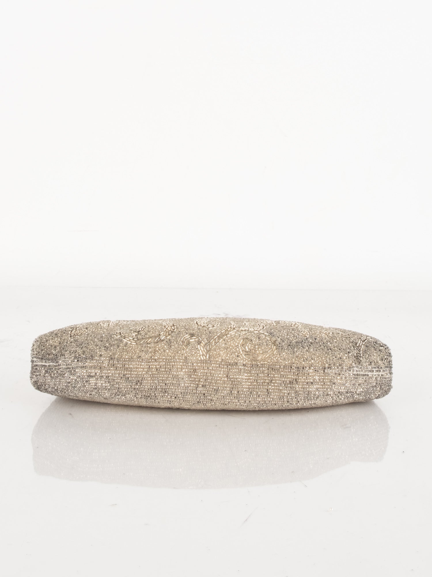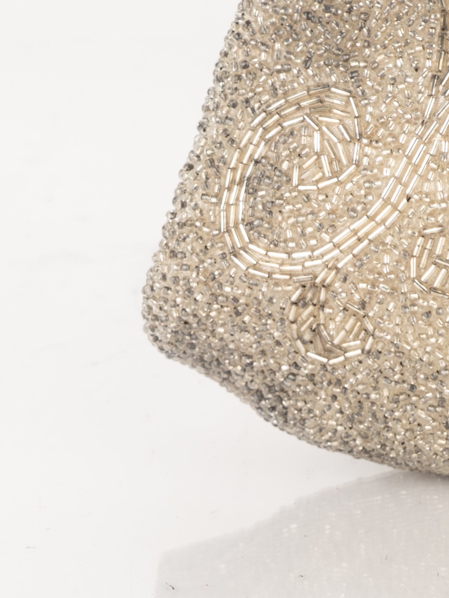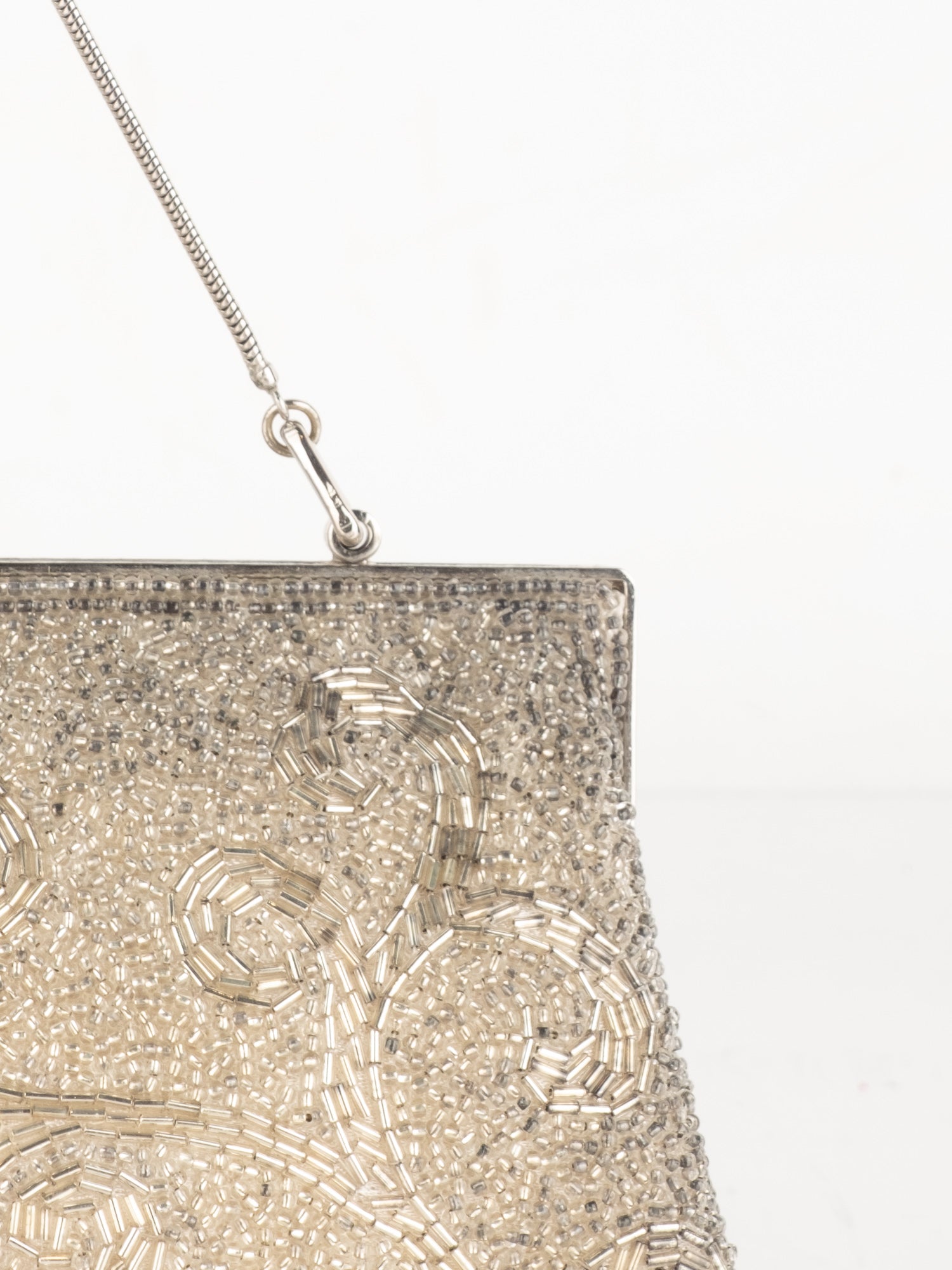 רשת כסף מבריקה, סגירת מתכת, ידית קצרה, תיק קטן תואם.