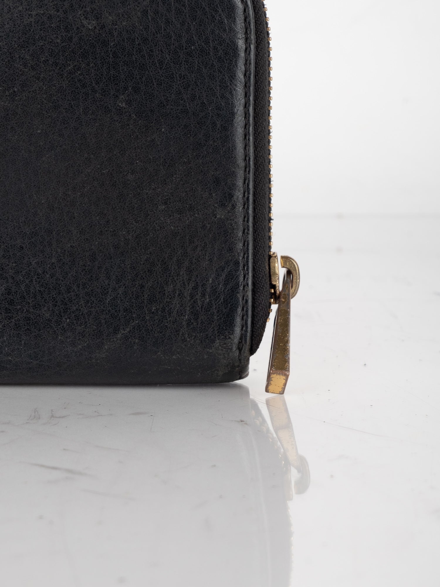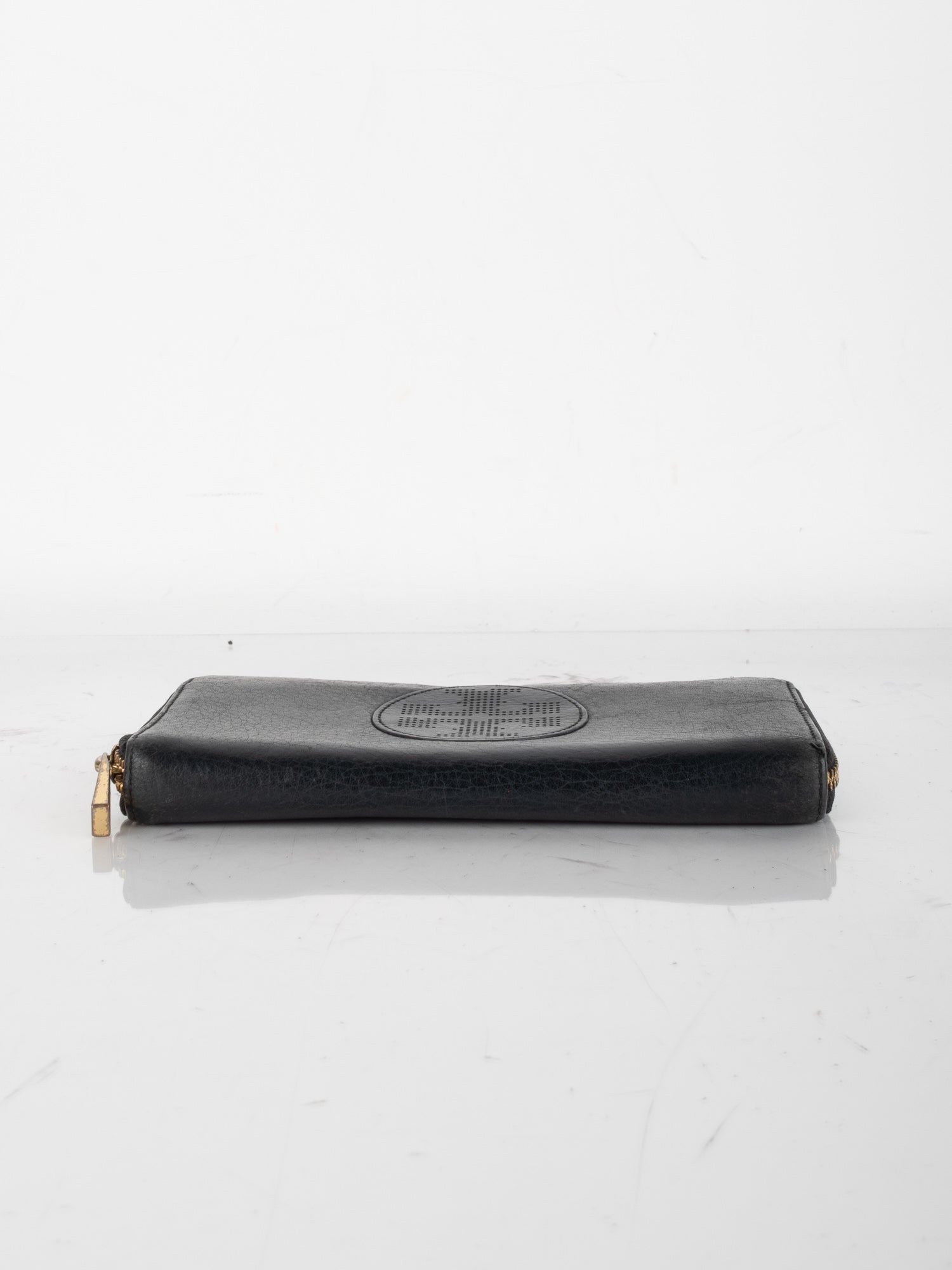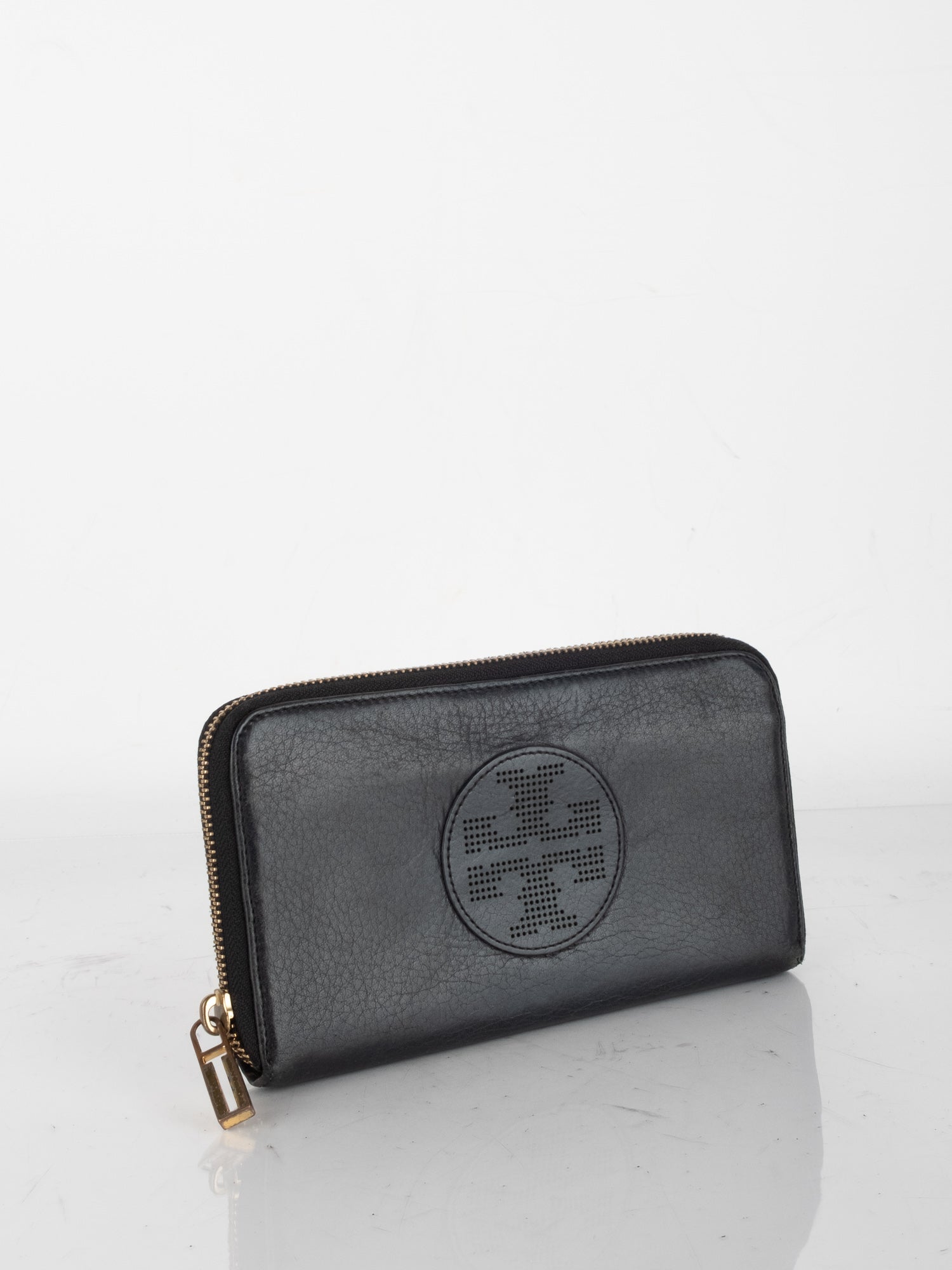 ארנק שחור יוקרתי של טורי ברץ׳ (Tory Burch), וינטג׳ יד שנייה, בעיצוב נקי וקלאסי שמאפיין את המותג. הגוון השחור העמוק מתמזג עם טקסטורת עור עדינה וסמל המותג המוטבע במרכז, ליצירת מראה מרשים ואלגנטי. הרוכסן המוזהב מוסיף נגיעת יוקרה מפתה ומעניק לארנק נוכחות אלגנטית אך פרקטית – מושלם לשימוש יומיומי או כפריט סטייל שלא מפספס.