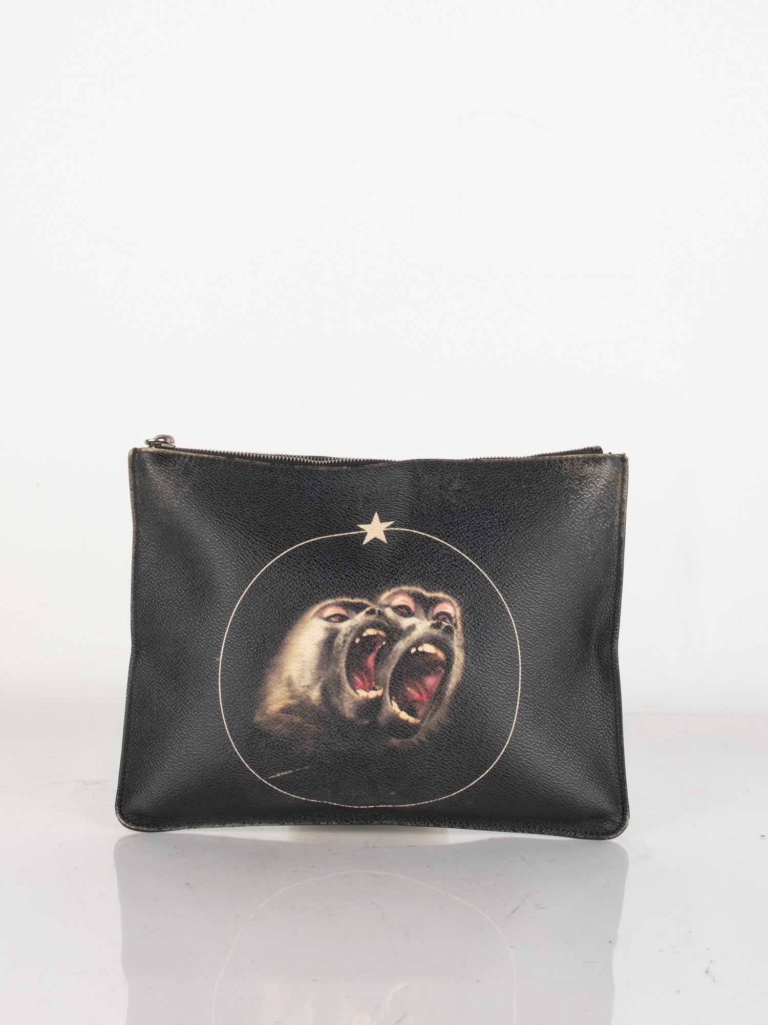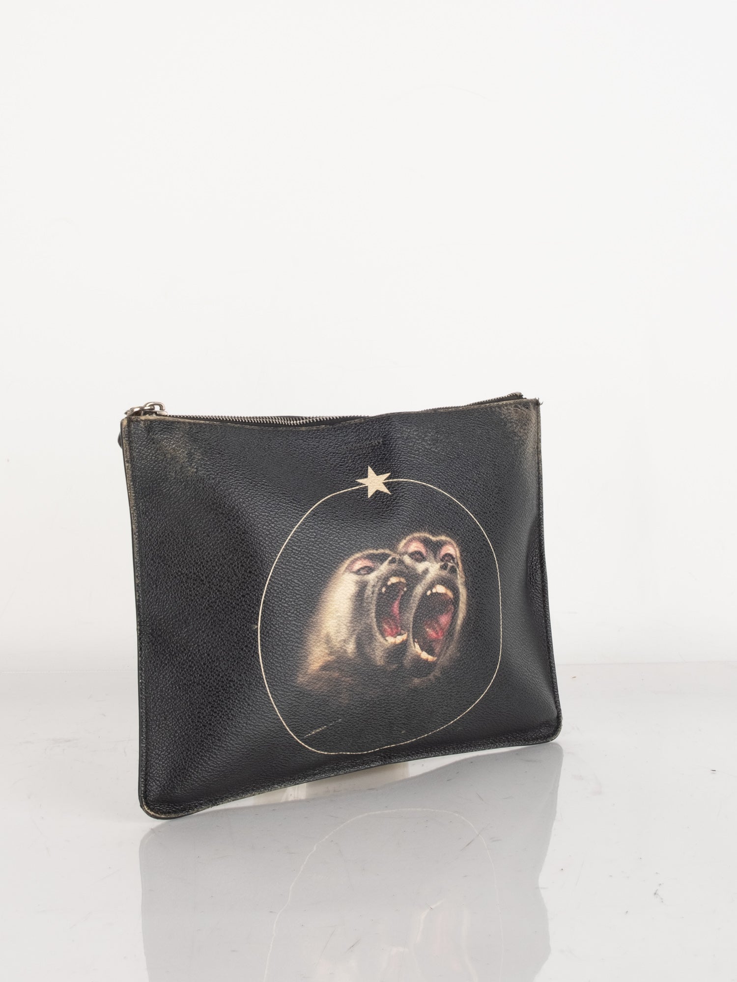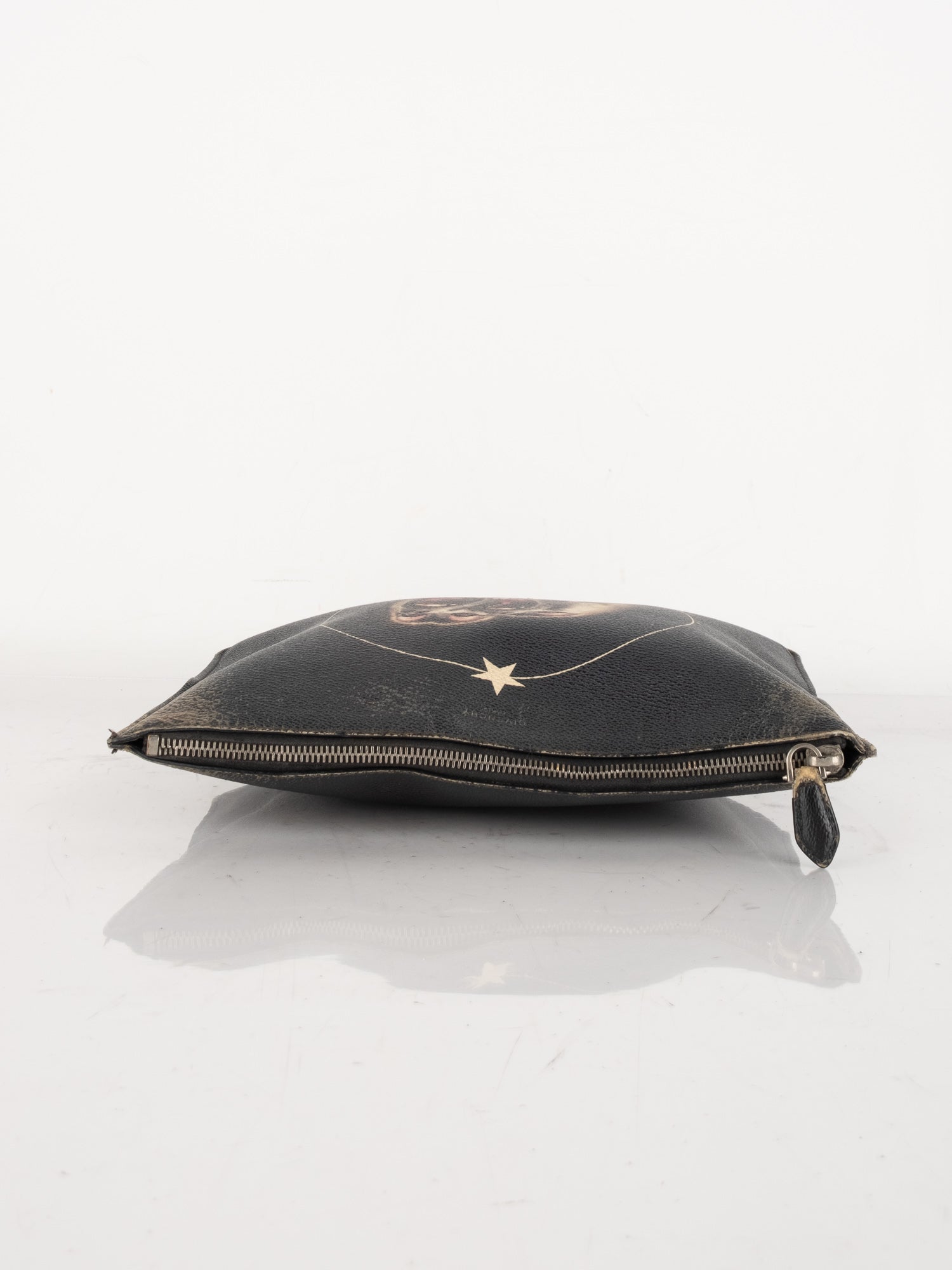 Givenchy Vintage Black Leather Clutch with Graphic Print