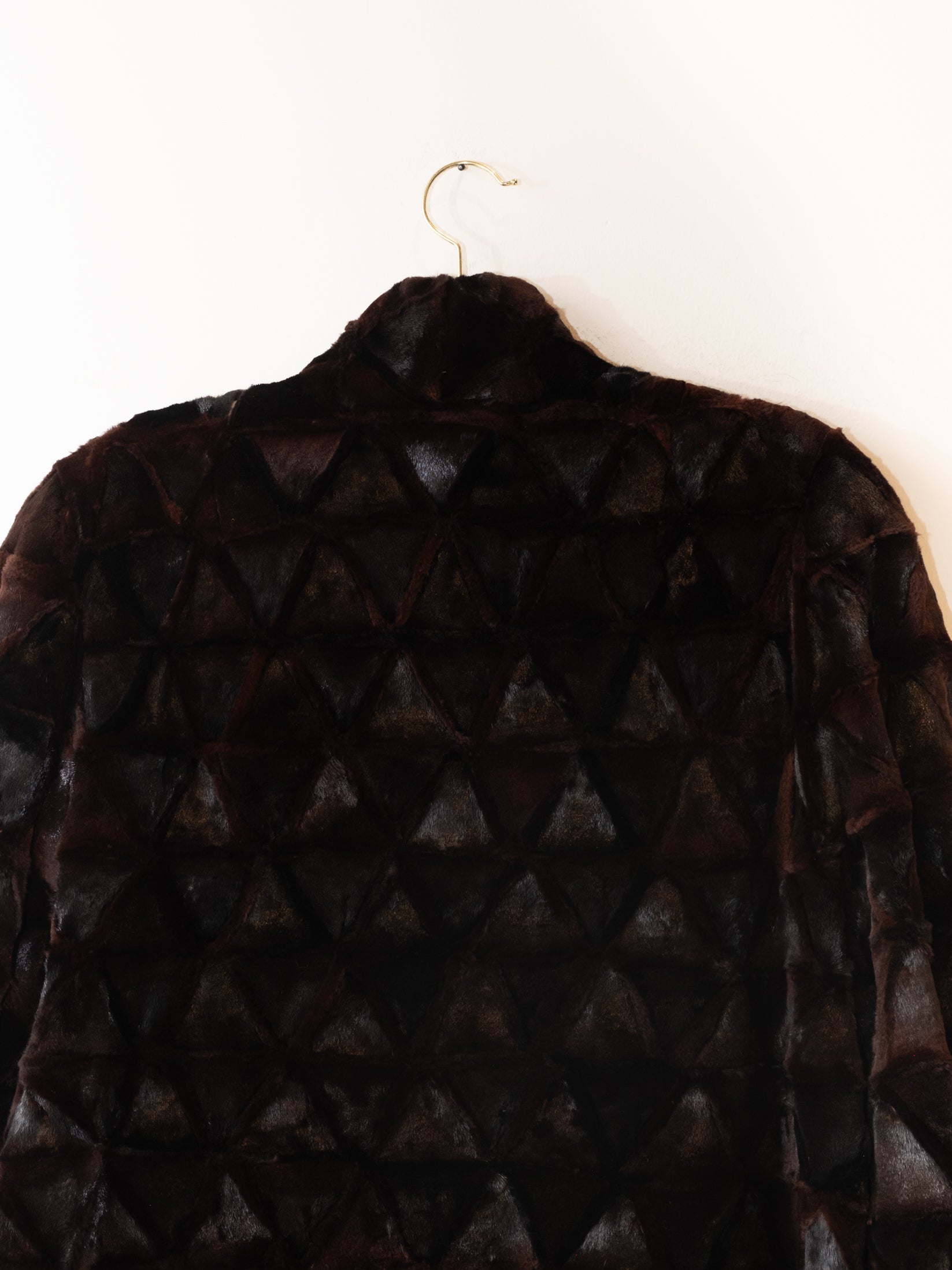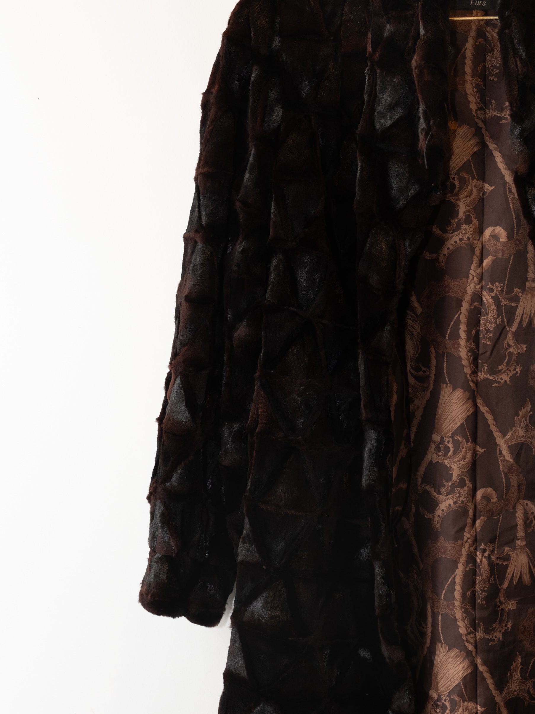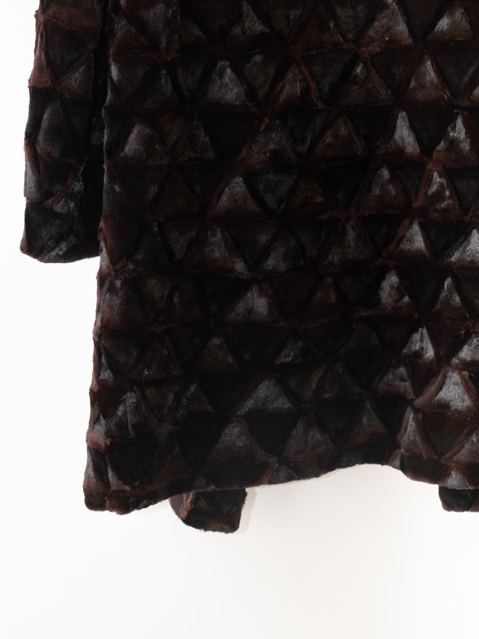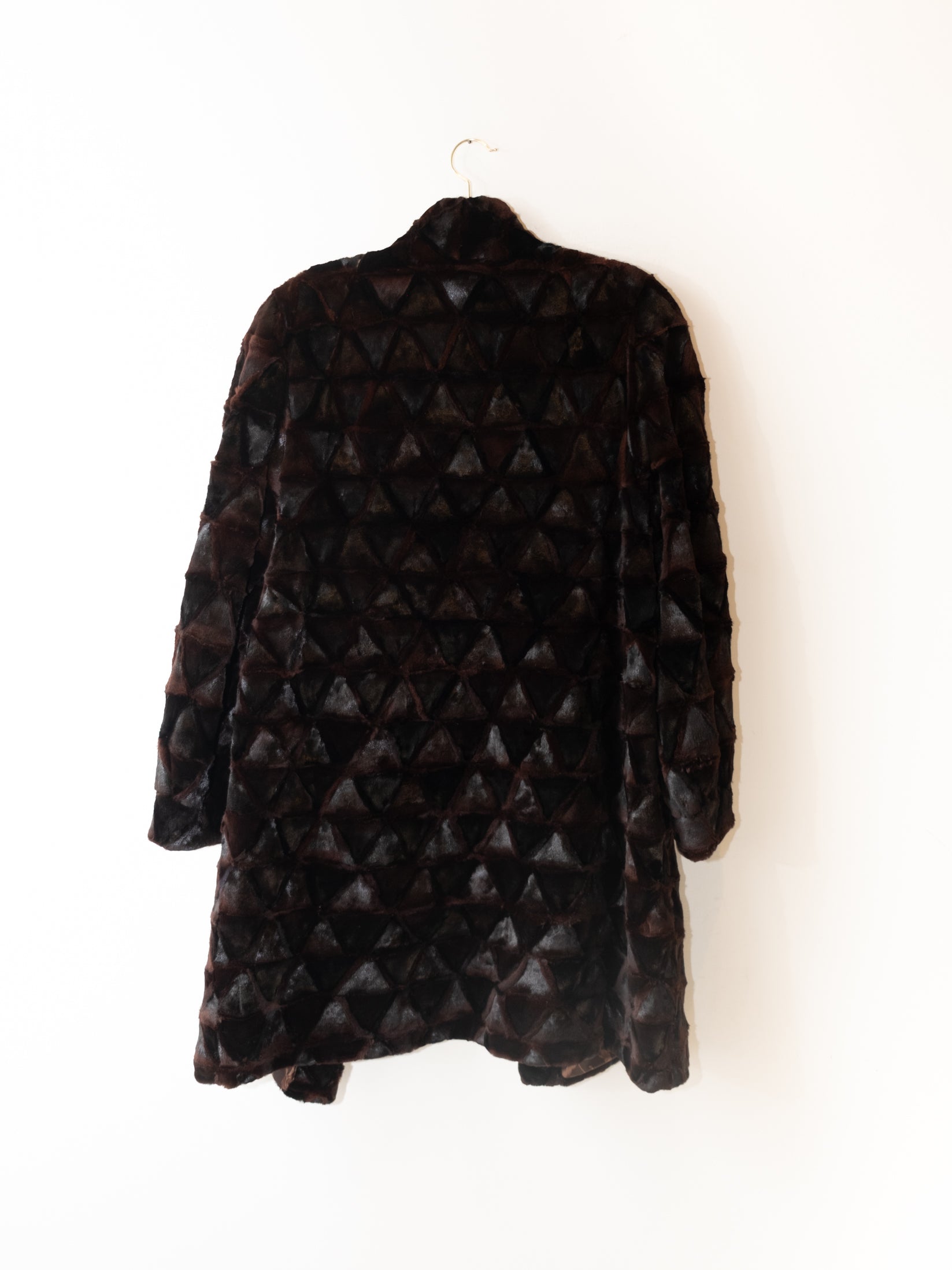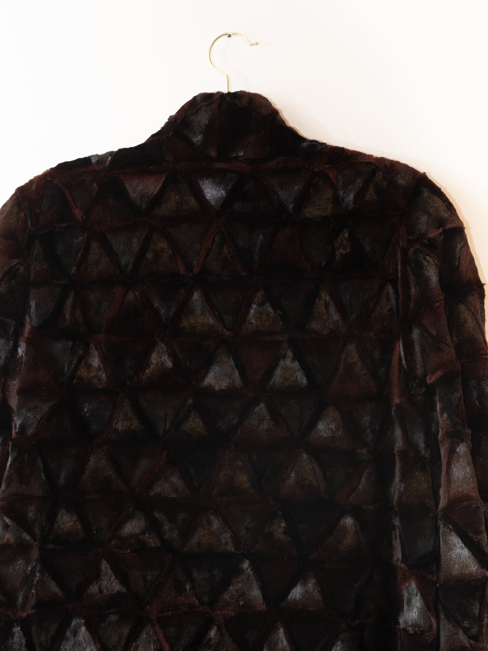 מעיל העשוי מפרווה בצבע חום הנסגר באמצעות ווים מוסתרים וכפתור ממות גדול, בעל שני כיסים צדדים ללא סגירה. הבטנה של המעיל בעלת ציורים המיוחדים של המותג וישנם שני לולאות המאפשרות להניח את המעיל על הכתפיים על מנת להראות את הבטנה.