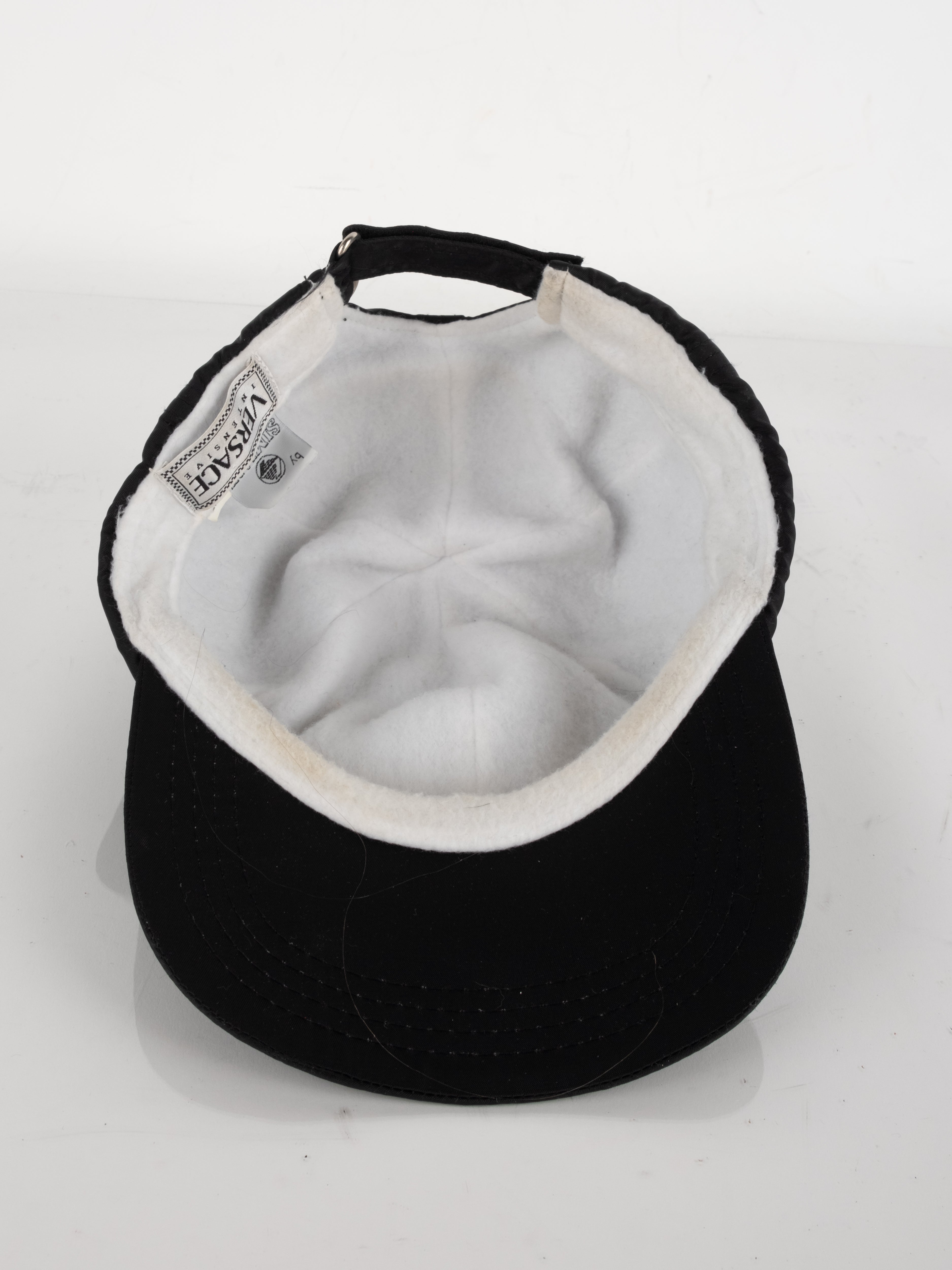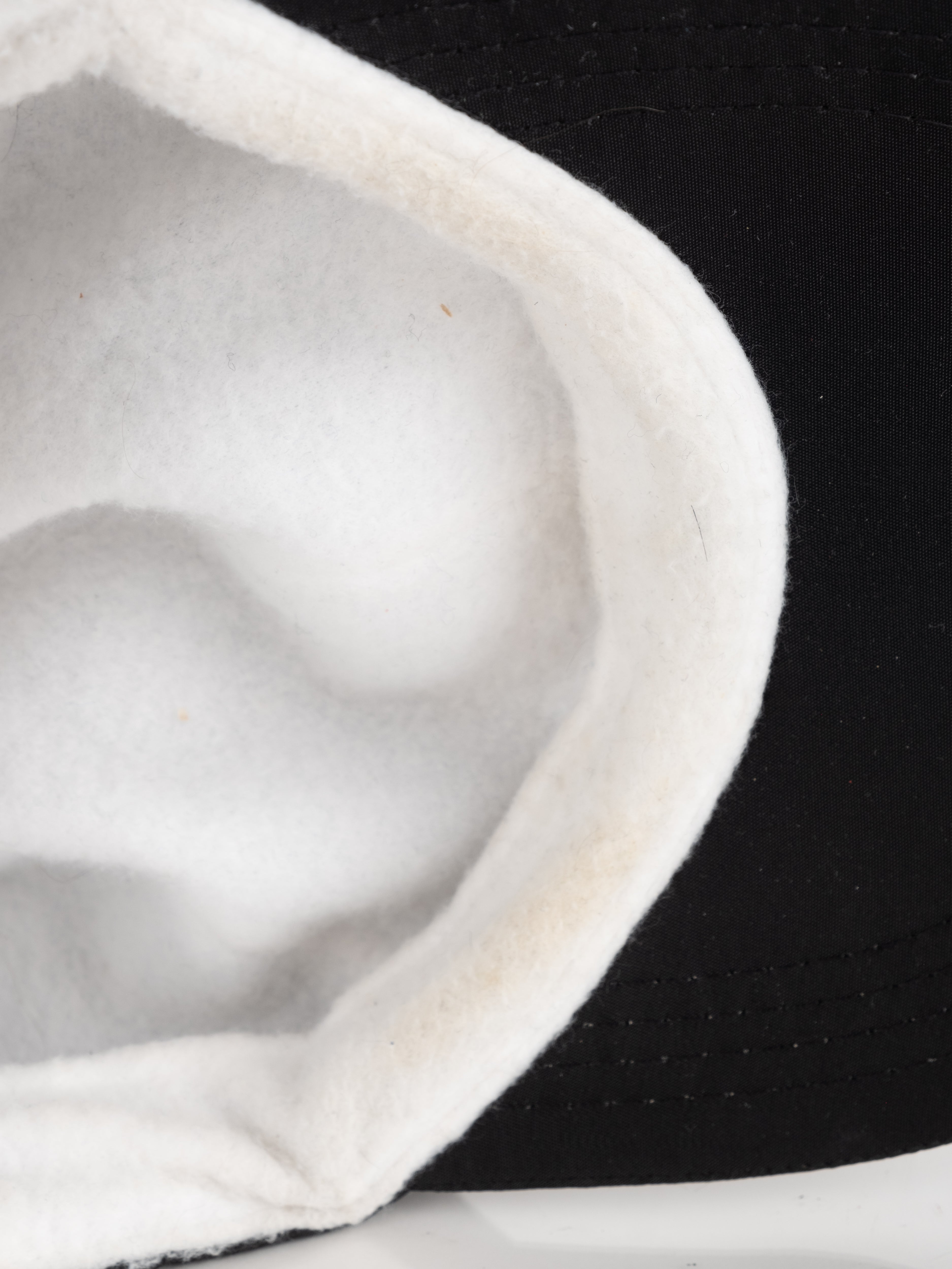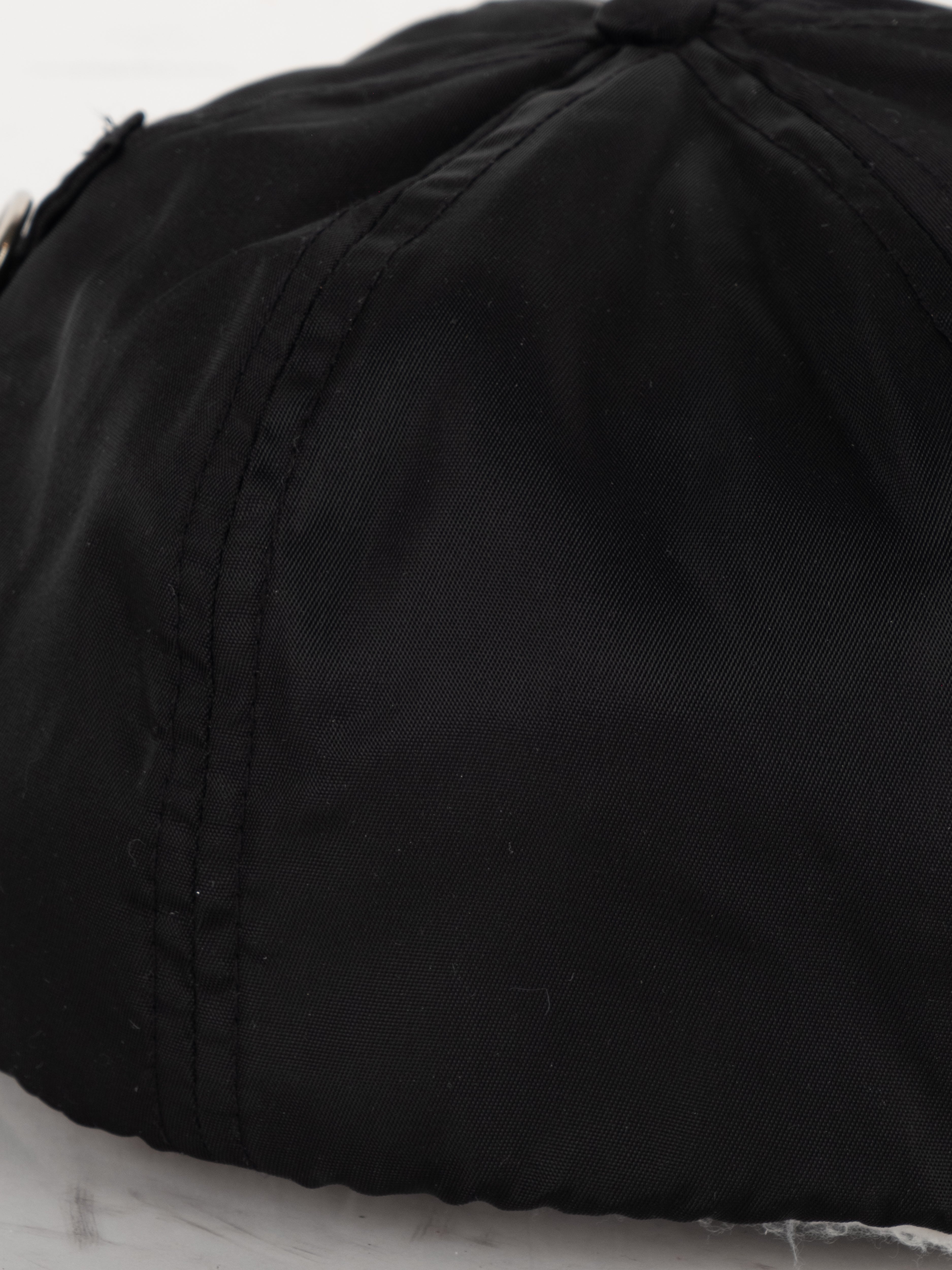 הכובע עשוי בד טקסטילי רך, סגירה אחורית מתכווננת, גוון שחור עם רקמת לוגו לבנה בחזית.