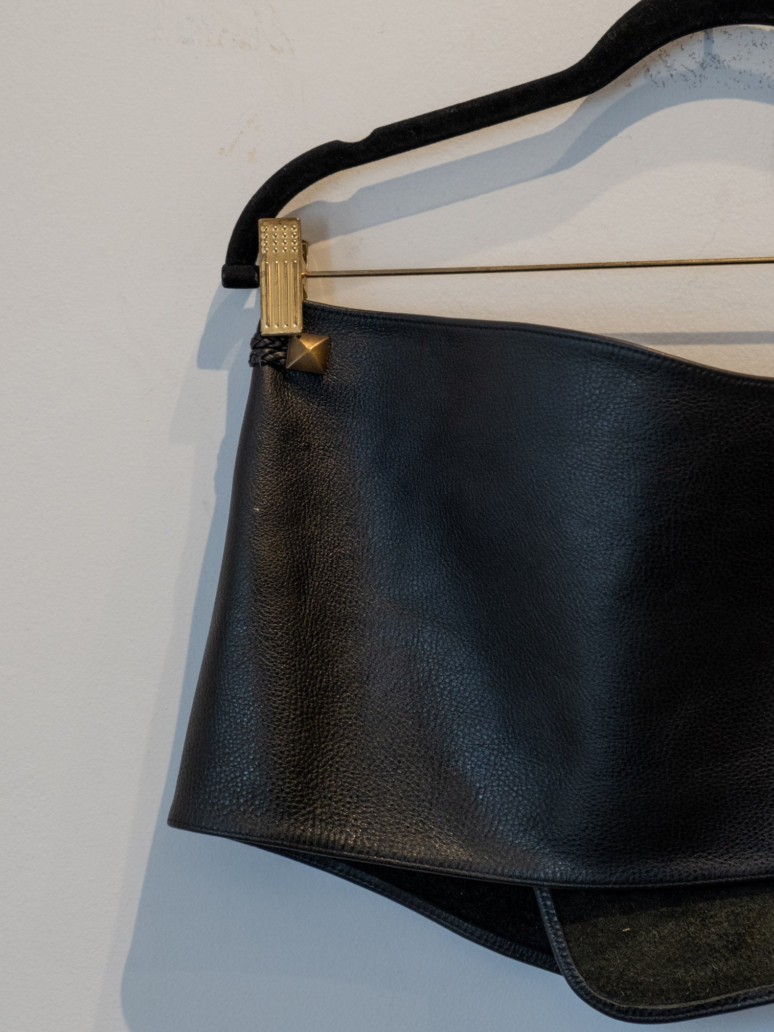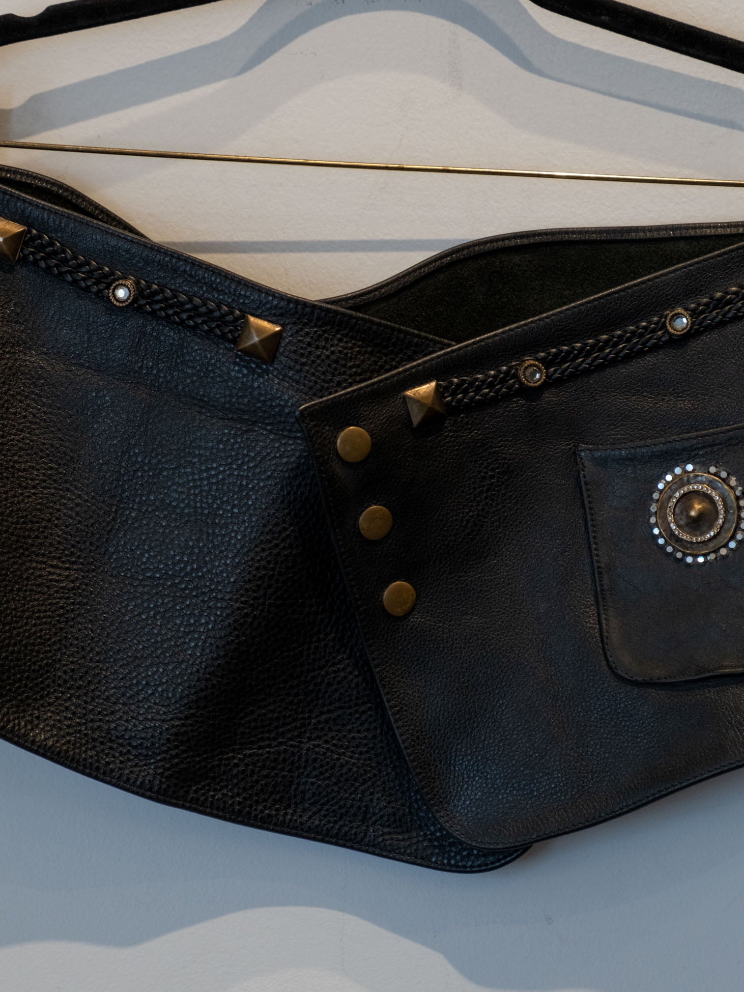 חגורה עבה המיועדת למותן העשויה מעור המשולמת באמצעות דיטיילים בצבע זהב הנסגרת באמצעות שלושה כפתורי תיק-תק.