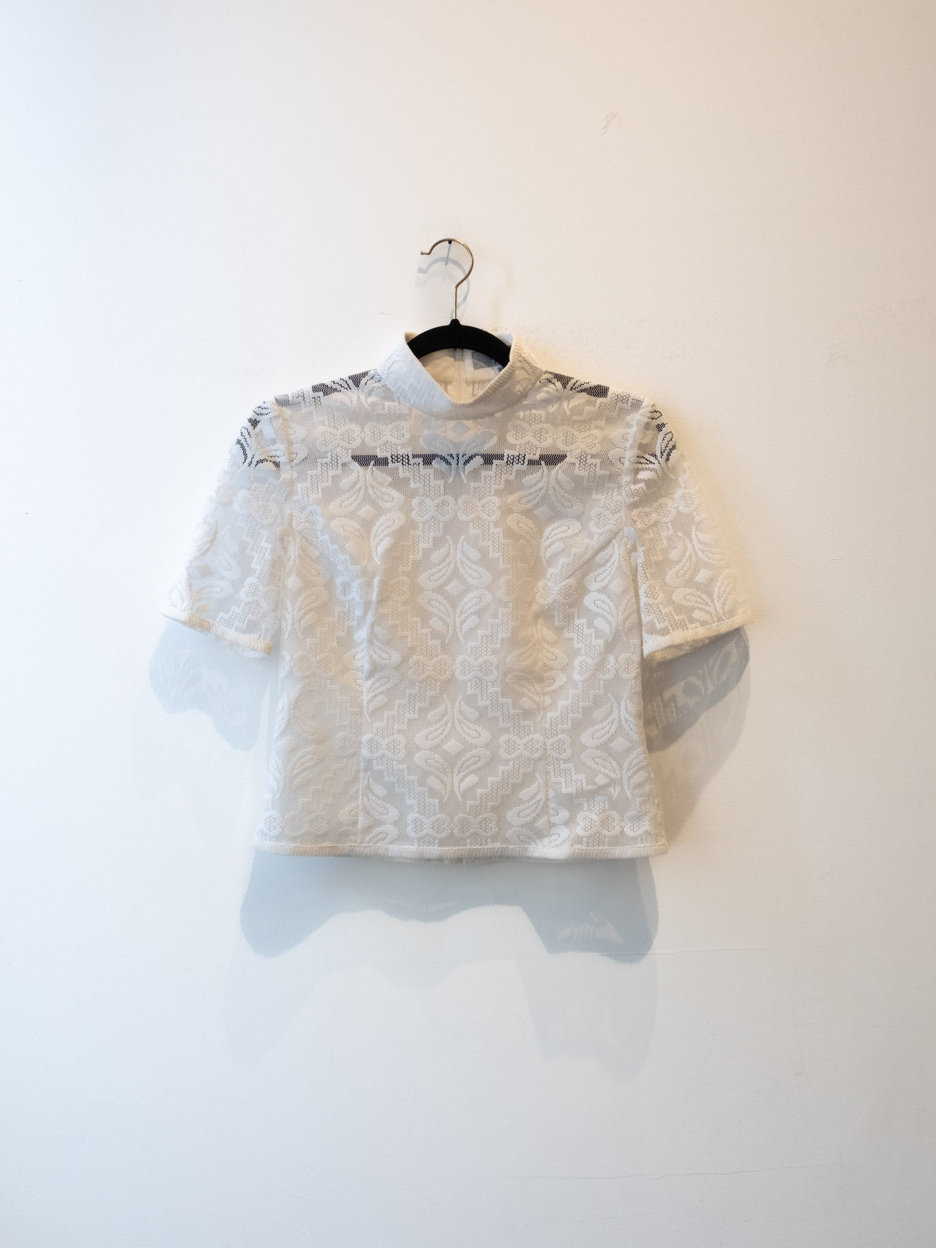 חליפה מהממת בצבע לבן העשויה מתחרה של חולצה עם שרוול קצר וחצאית באורך מידי.
